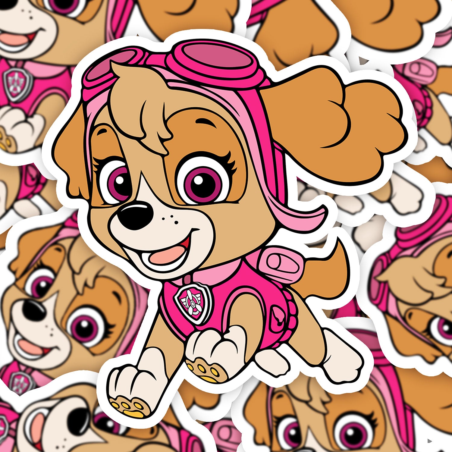 Set 5 bucati, Sticker decorativ, Paw Patrol Skye alergand, Rezistent la apa, NO10619, 6 cm, Multicolor