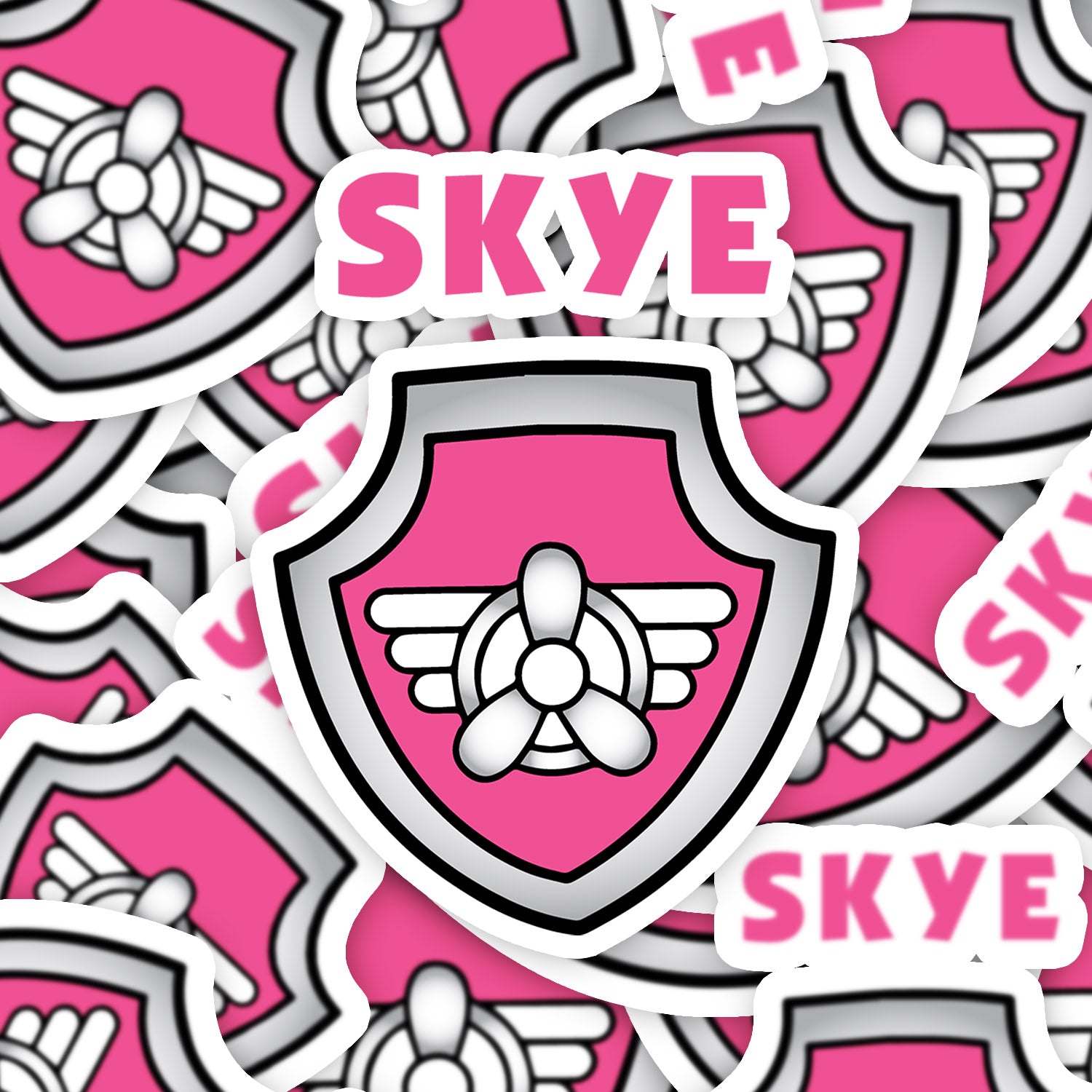 Set 5 bucati, Sticker decorativ, Paw Patrol Skye logo, Rezistent la apa, NO13067, 6 cm, Multicolor
