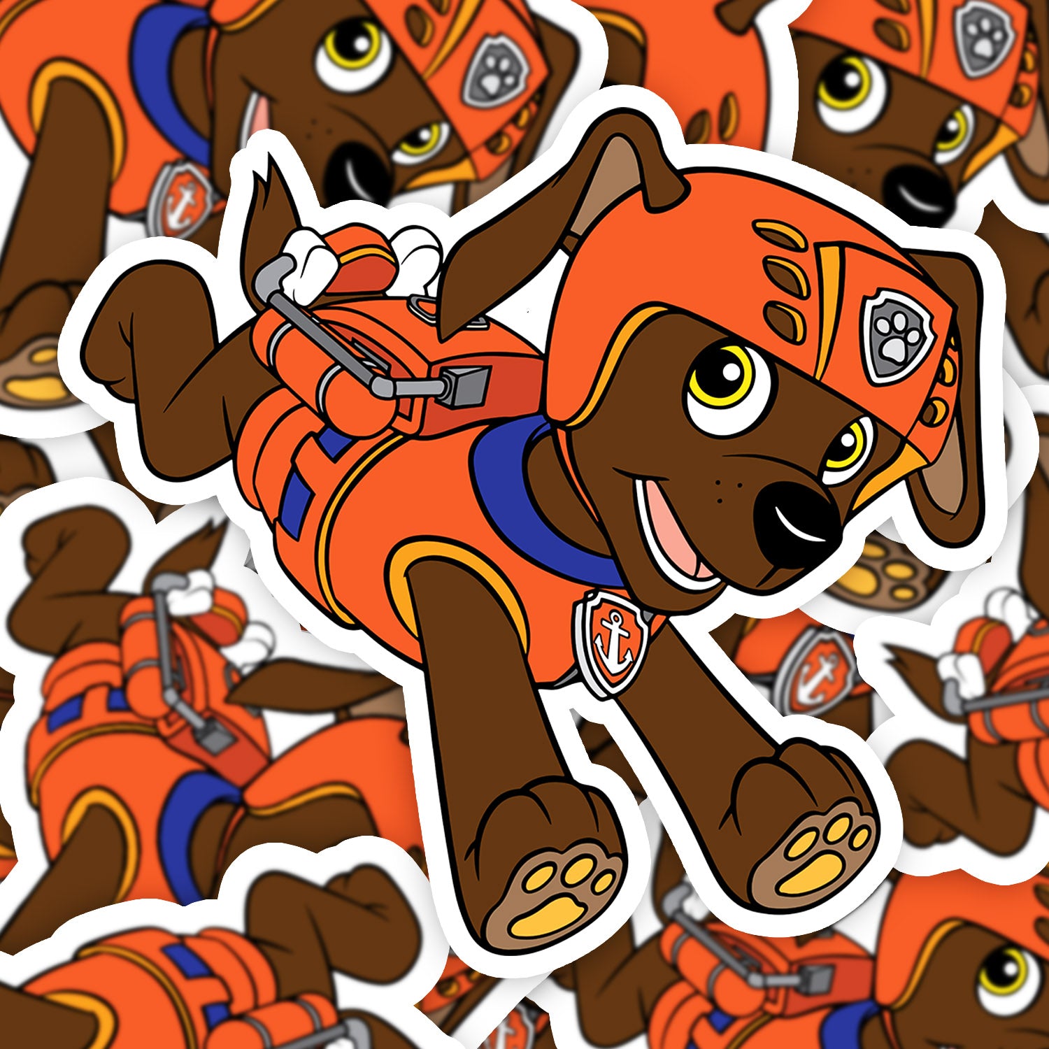 Set 5 bucati, Sticker decorativ, Paw Patrol Zuma alearga razand, Rezistent la apa, NO11381, 6 cm, Multicolor