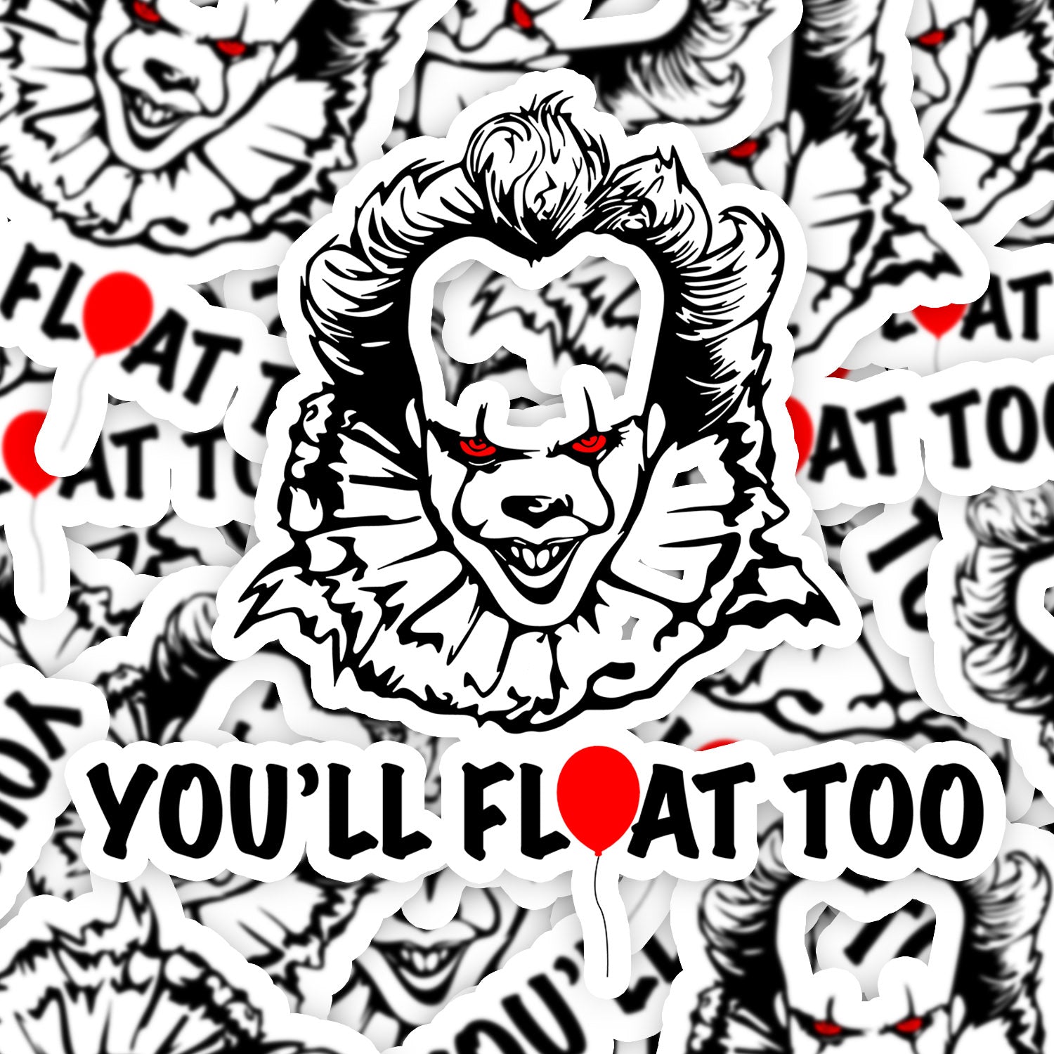 Set 5 bucati, Sticker decorativ, Pennywise Evil You ll Float Too, Rezistent la apa, NO12437, 6 cm, Multicolor
