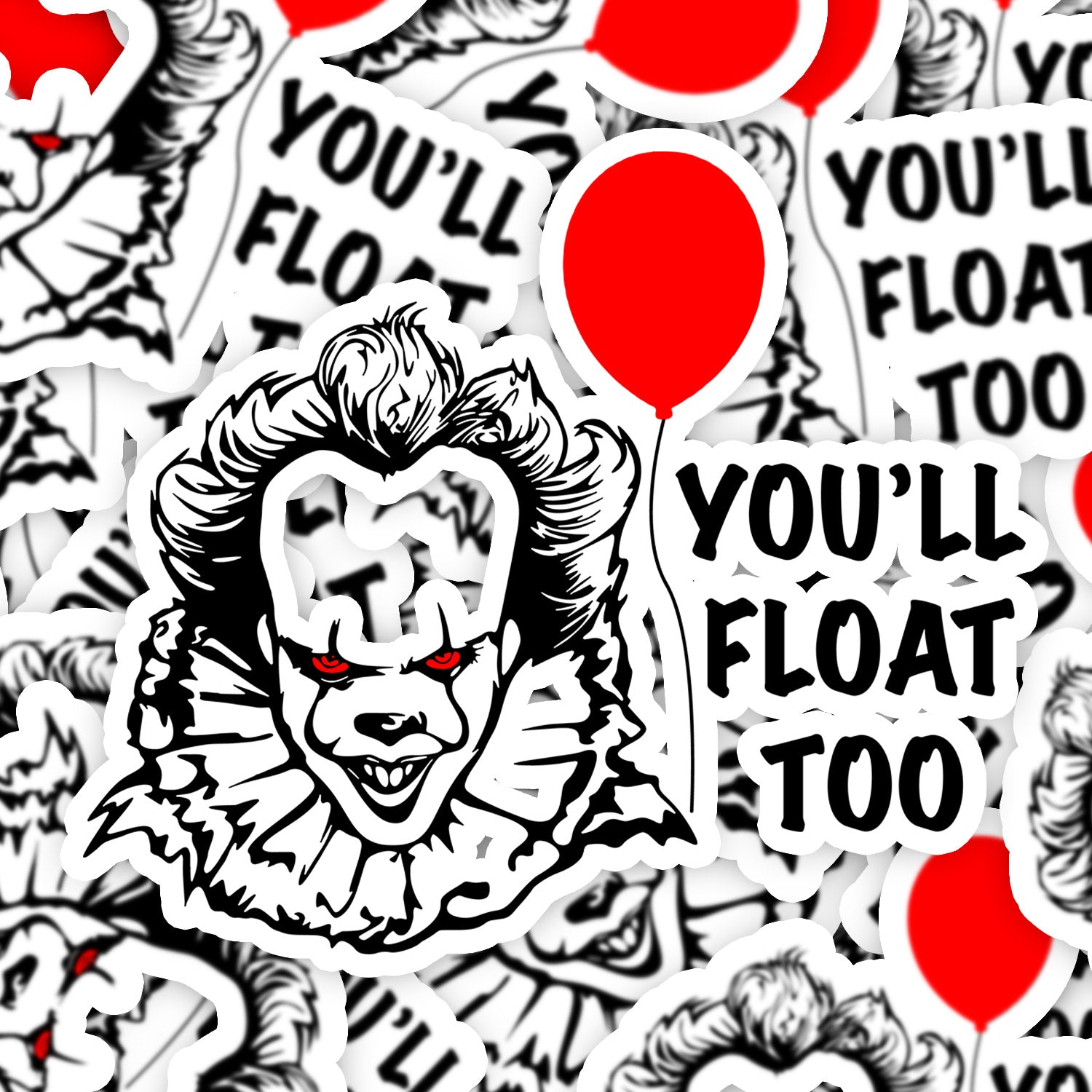 Set 5 bucati, Sticker decorativ, Pennywise You ll float too, Rezistent la apa, NO15421, 6 cm, Multicolor