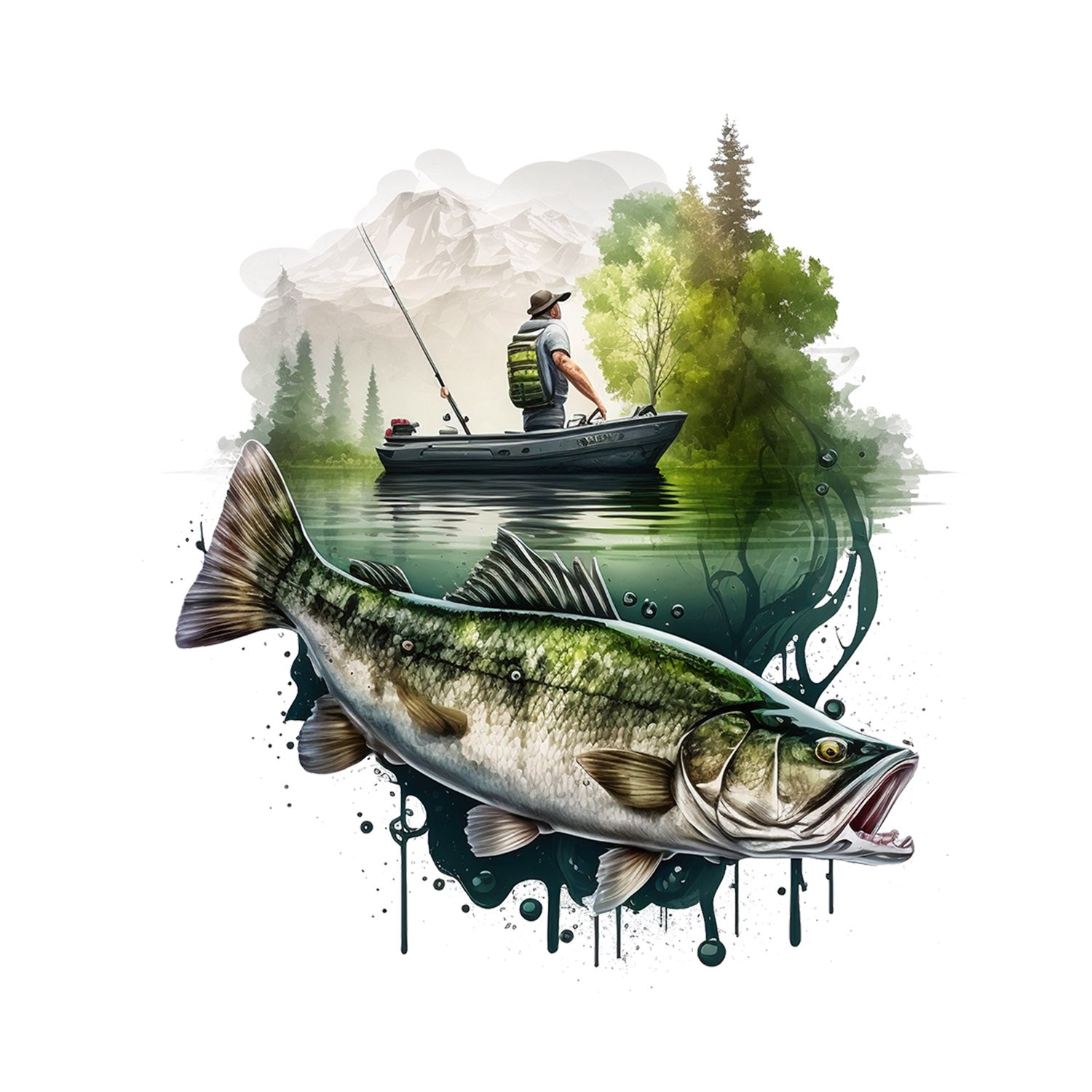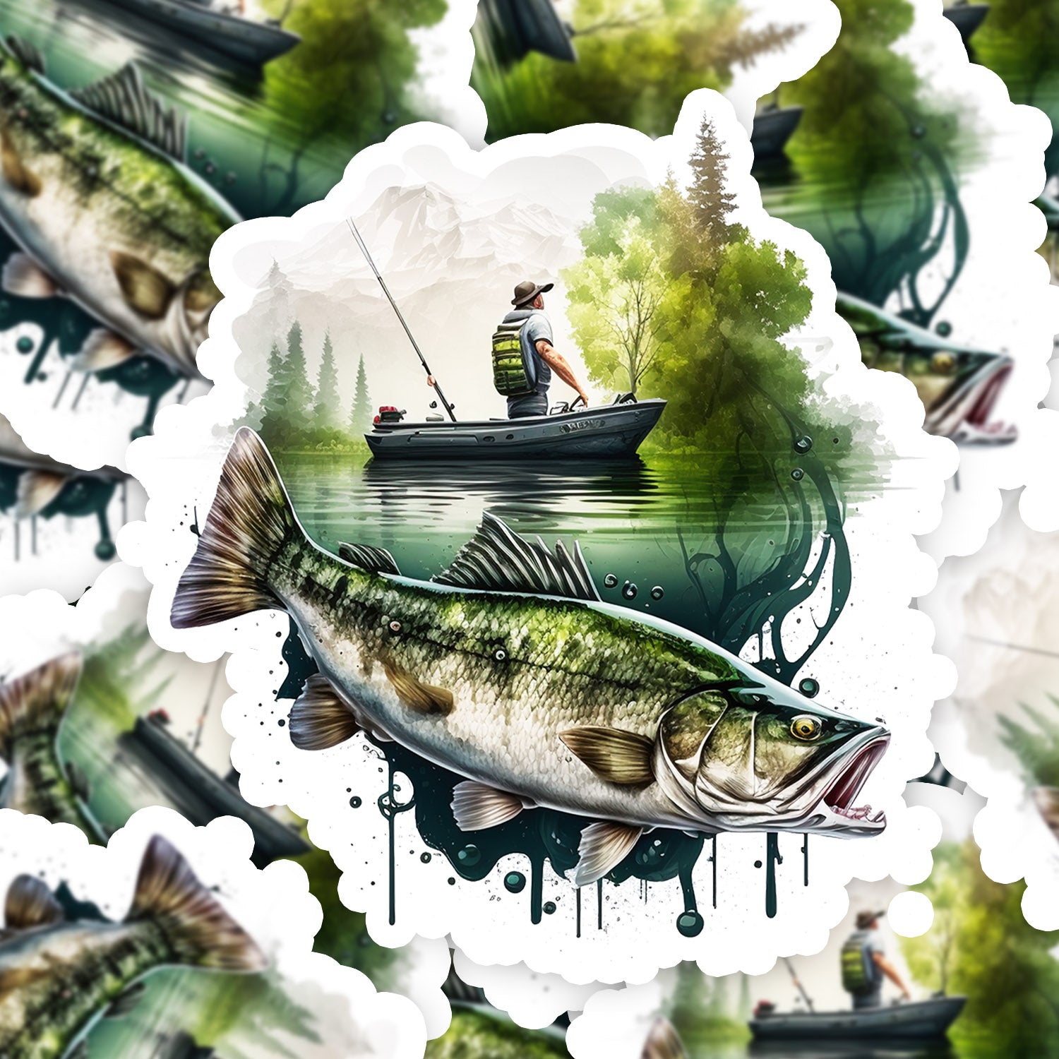 Set 5 bucati, Sticker decorativ, Pescar pe lac in munti, Rezistent la apa, NO11247, 6 cm, Multicolor