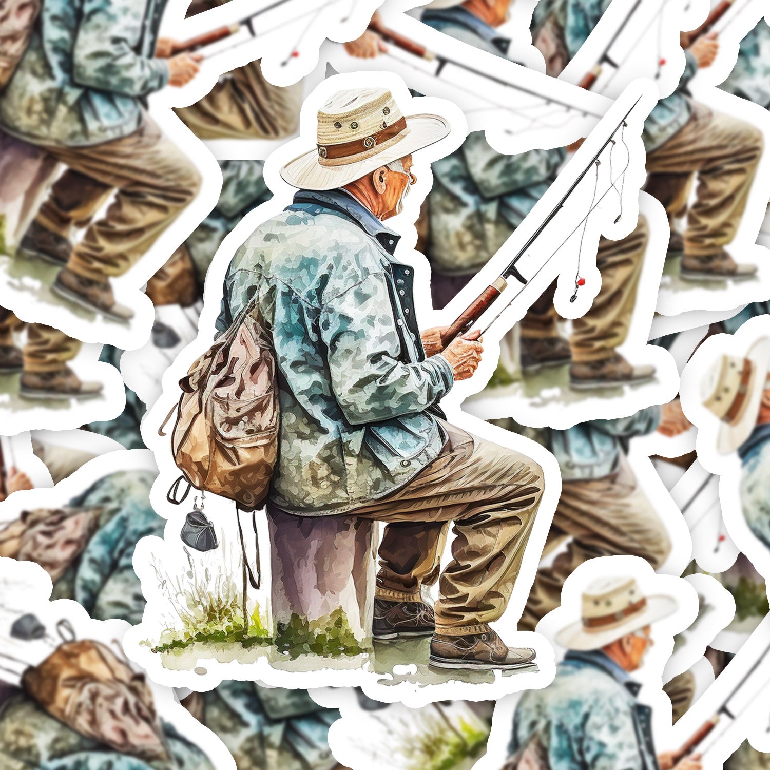 Set 5 bucati, Sticker decorativ, Pescarul cu parul alb, Rezistent la apa, NO15287, 6 cm, Multicolor