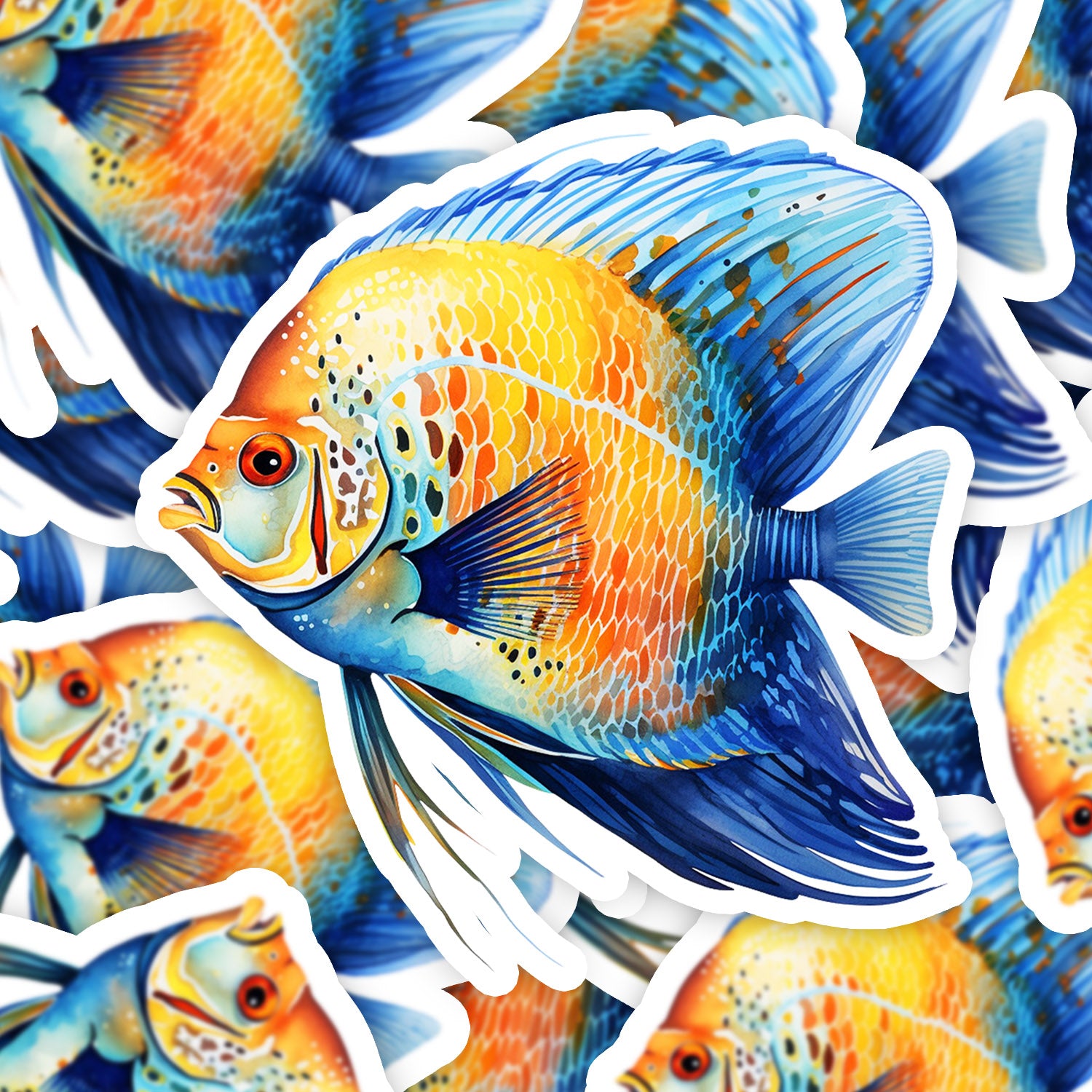Set 5 bucati, Sticker decorativ, Pestele tropical, Rezistent la apa, NO15824, 6 cm, Multicolor
