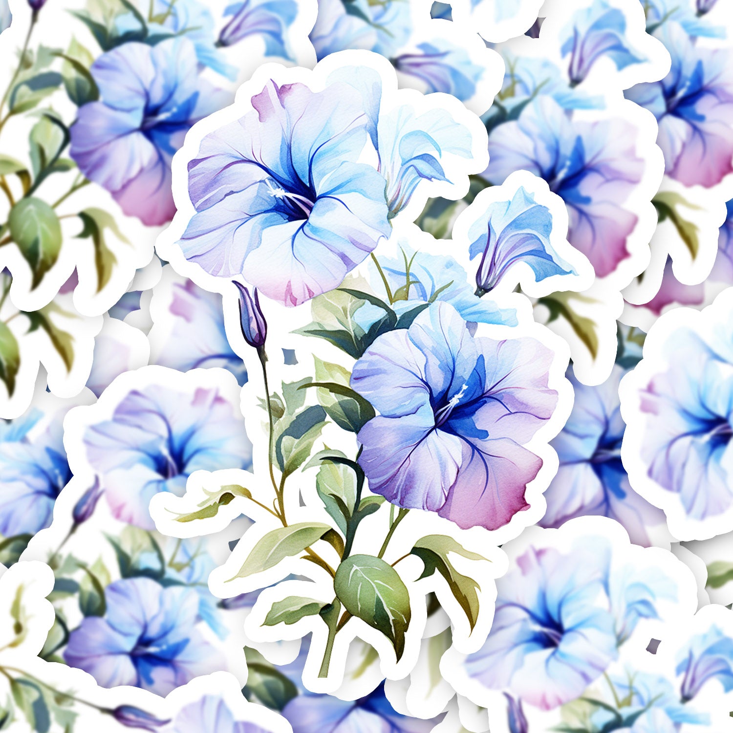 Set 5 bucati, Sticker decorativ, Petunii albastre cu frunze, Rezistent la apa, NO14348, 6 cm, Multicolor