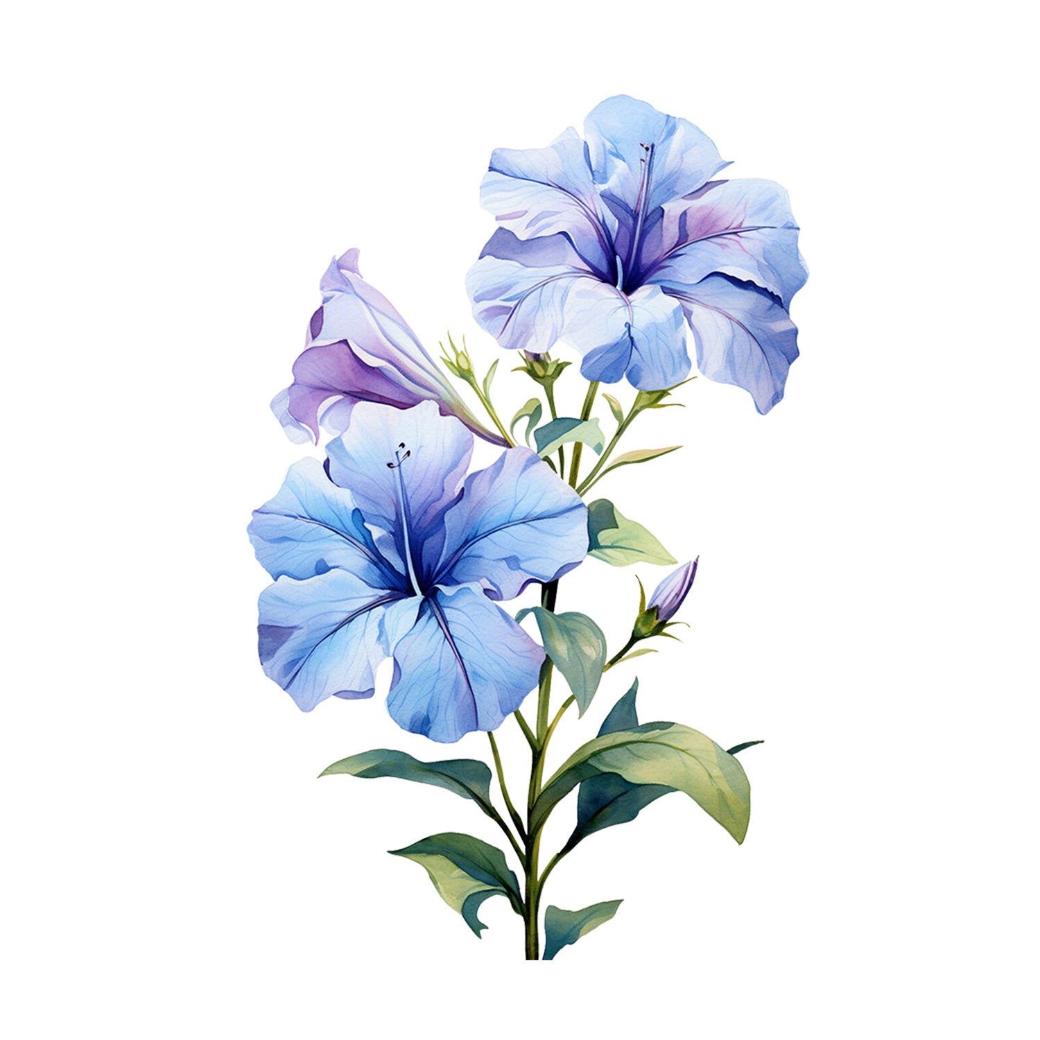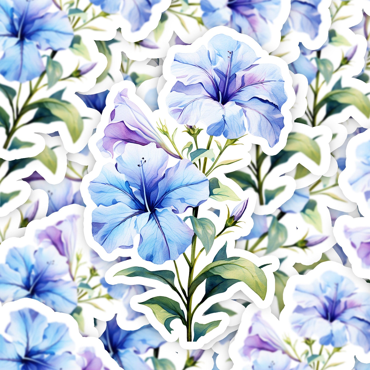 Set 5 bucati, Sticker decorativ, Petunii albastre, Rezistent la apa, NO15213, 6 cm, Multicolor