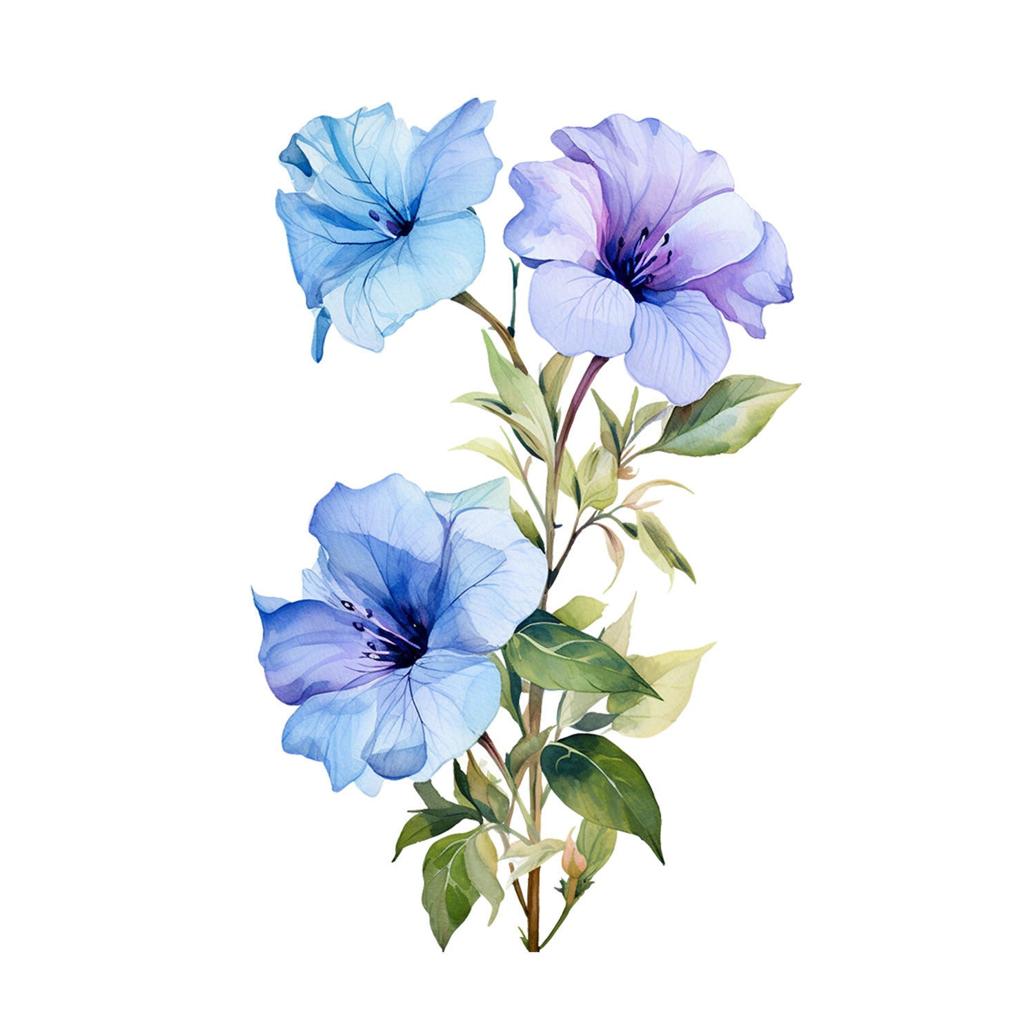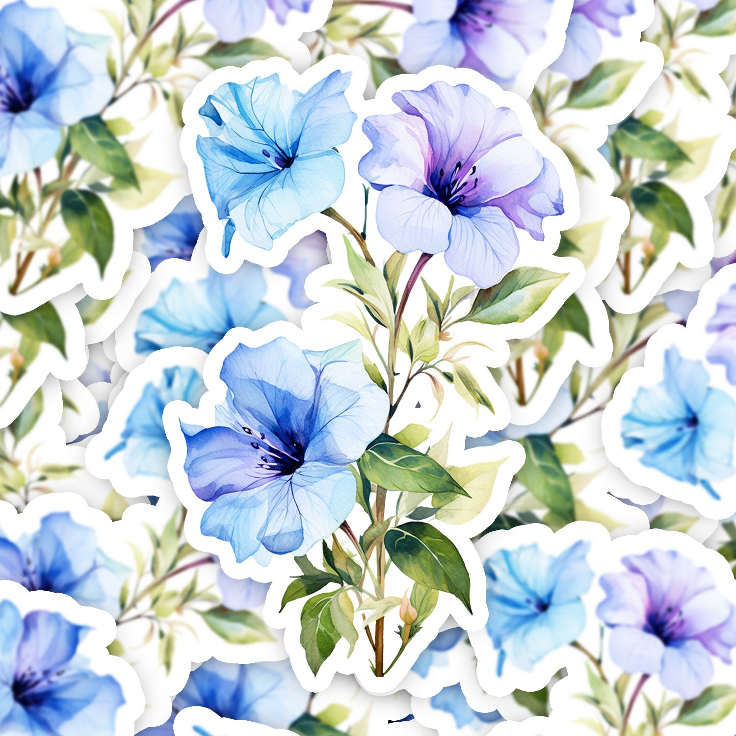 Set 5 bucati, Sticker decorativ, Petunii mov albastru, Rezistent la apa, NO14007, 6 cm, Multicolor