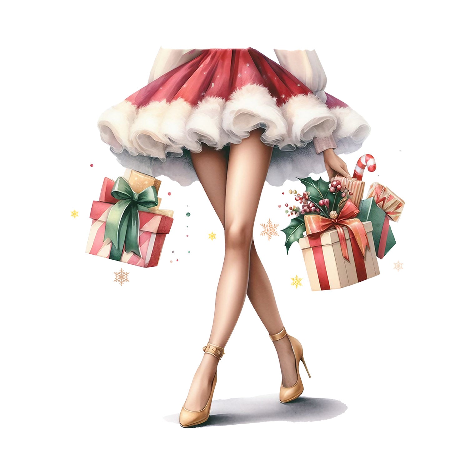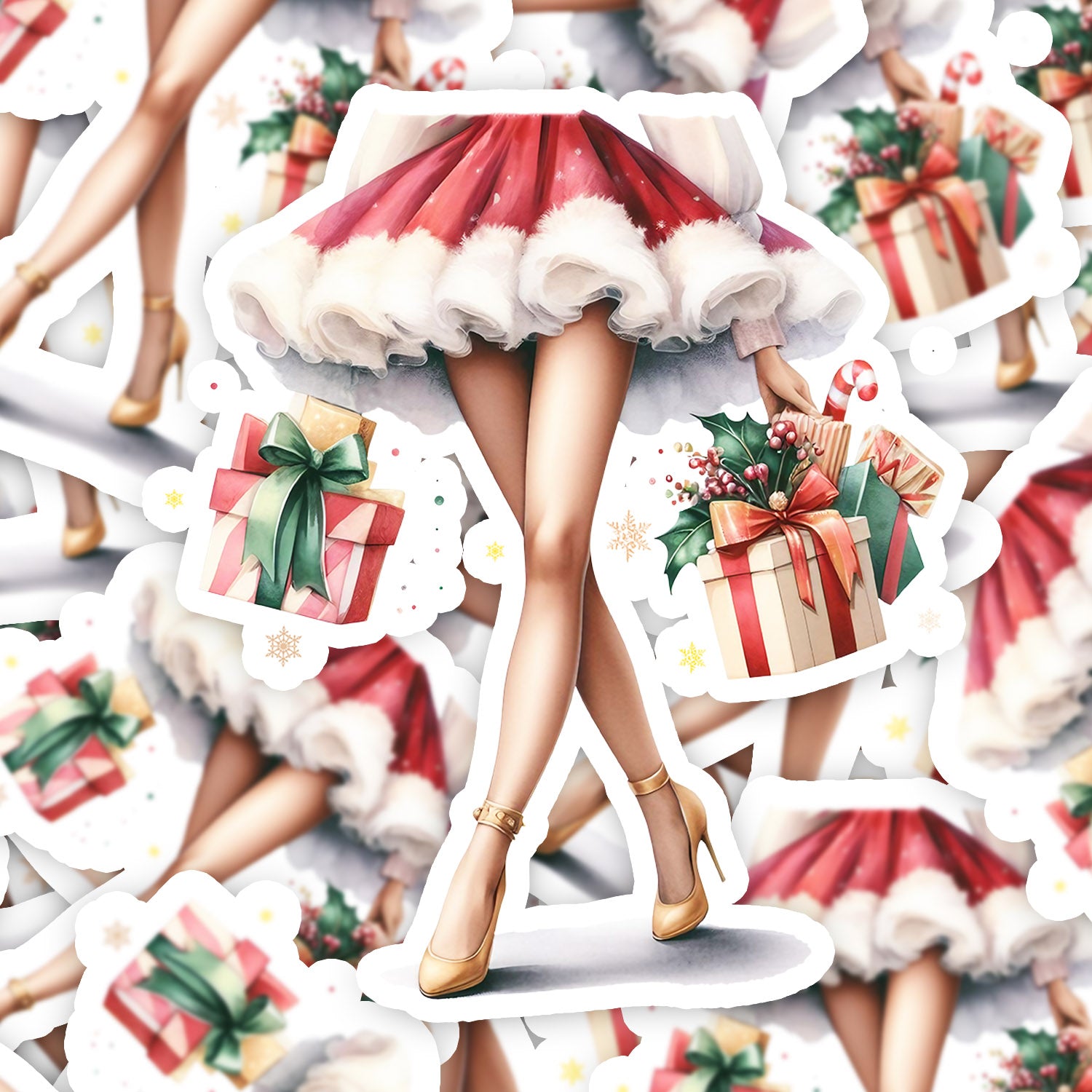 Set 5 bucati, Sticker decorativ, Picioare de femeie sexy cu cadouri de craciun Elena, Rezistent la apa, NO10594, 6 cm, Multicolor