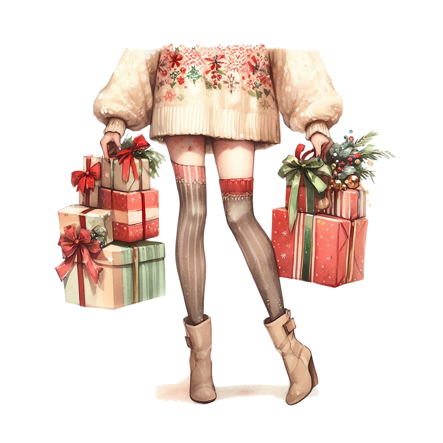Set 5 bucati, Sticker decorativ, Picioare de femeie sexy cu cadouri de craciun Emilia, Rezistent la apa, NO14547, 6 cm, Multicolor
