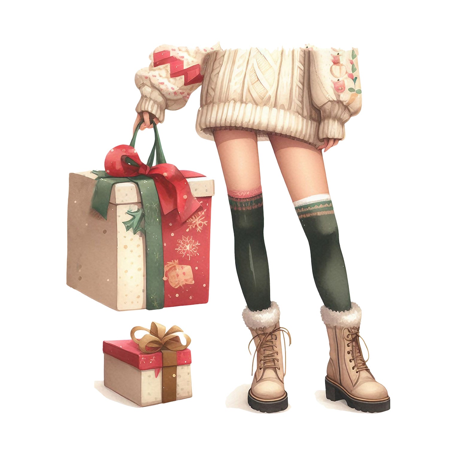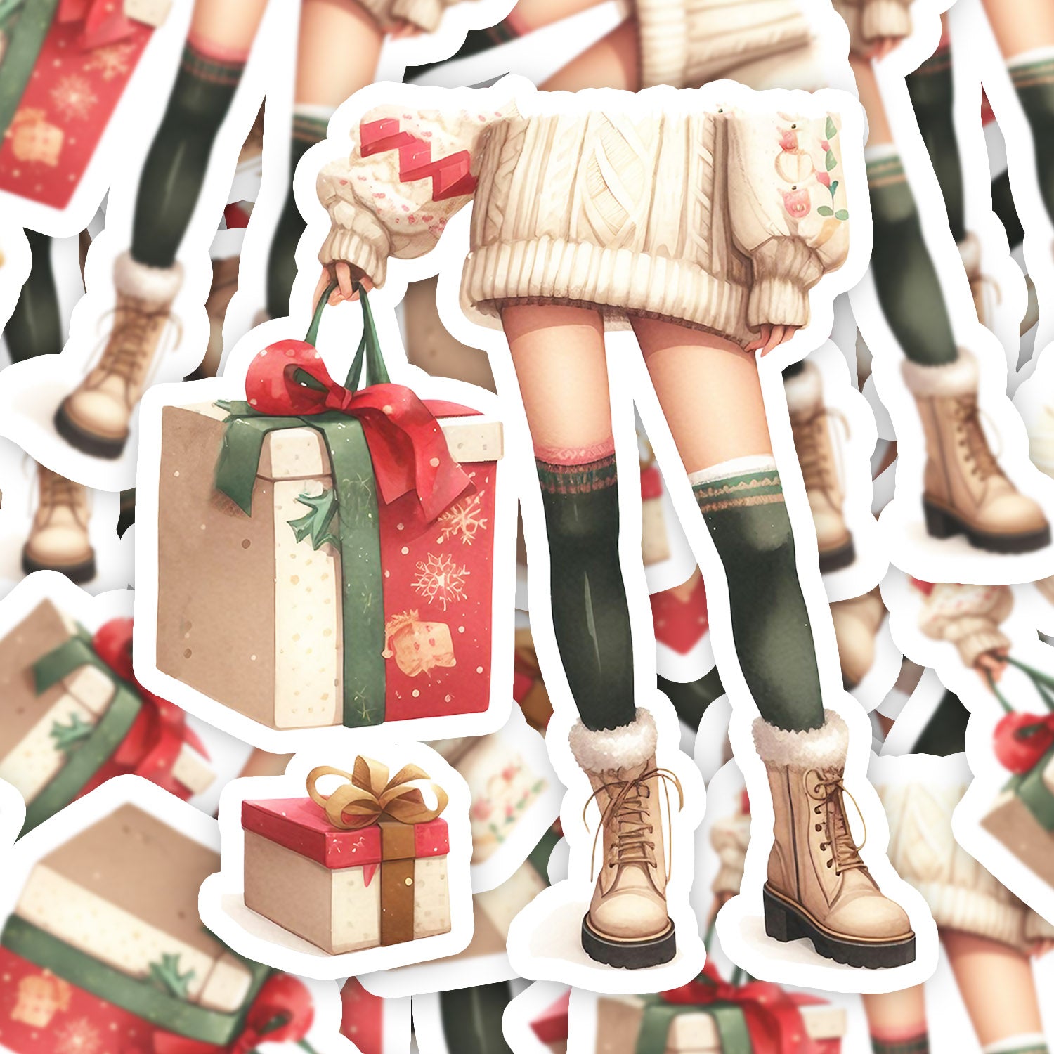 Set 5 bucati, Sticker decorativ, Picioare de femeie sexy cu cadouri de craciun Emma, Rezistent la apa, NO12297, 6 cm, Multicolor