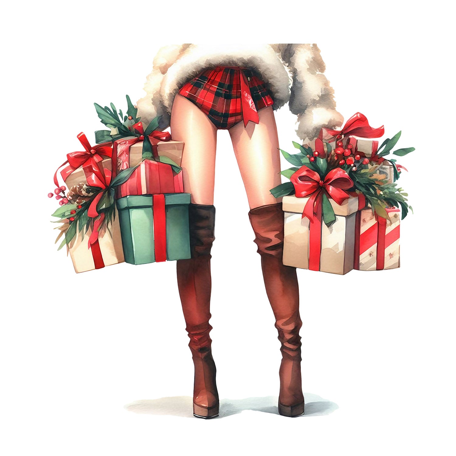 Set 5 bucati, Sticker decorativ, Picioare de femeie sexy cu cadouri de craciun Fabiana, Rezistent la apa, NO15469, 6 cm, Multicolor
