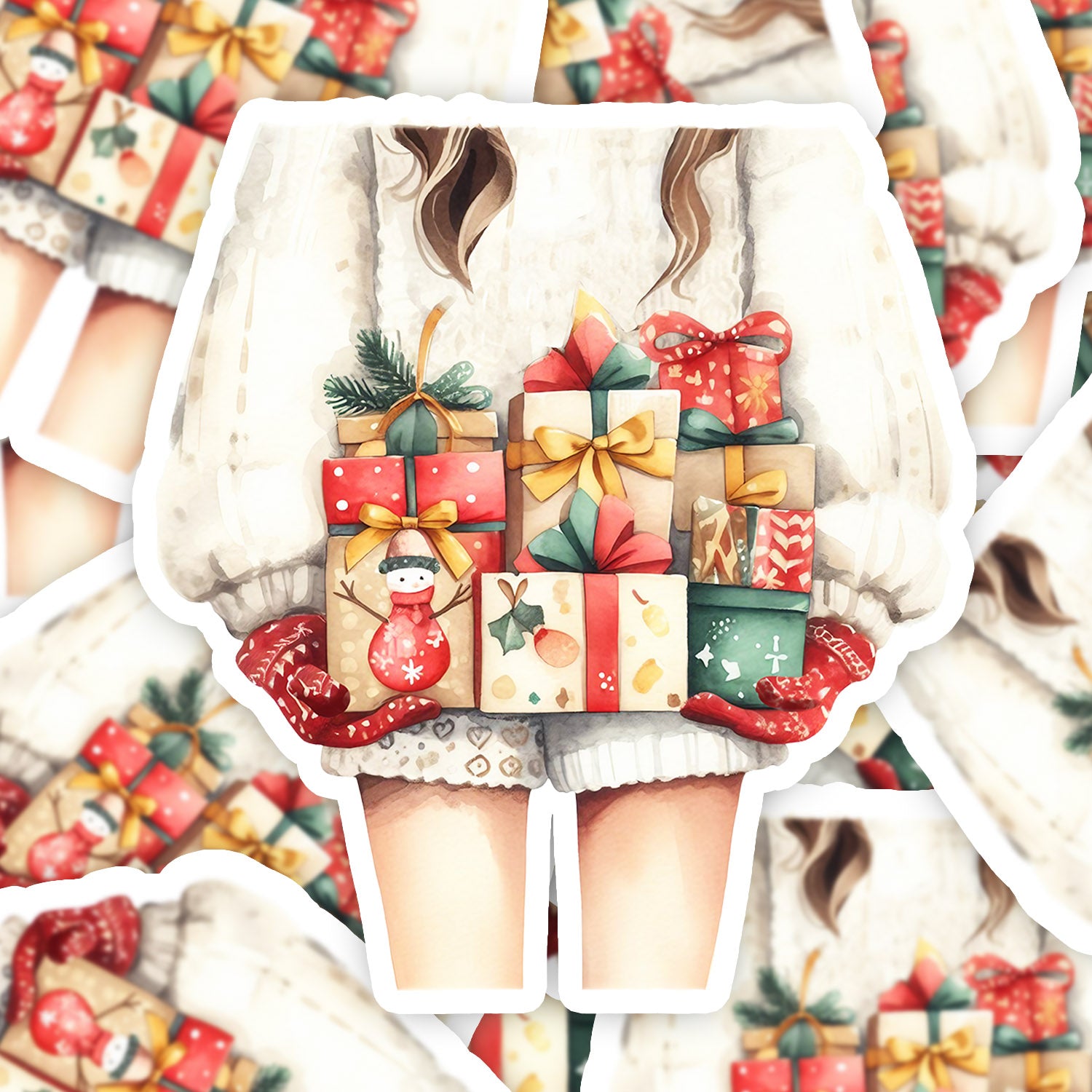 Set 5 bucati, Sticker decorativ, Picioare de femeie sexy cu cadouri de craciun Ivona, Rezistent la apa, NO14333, 6 cm, Multicolor