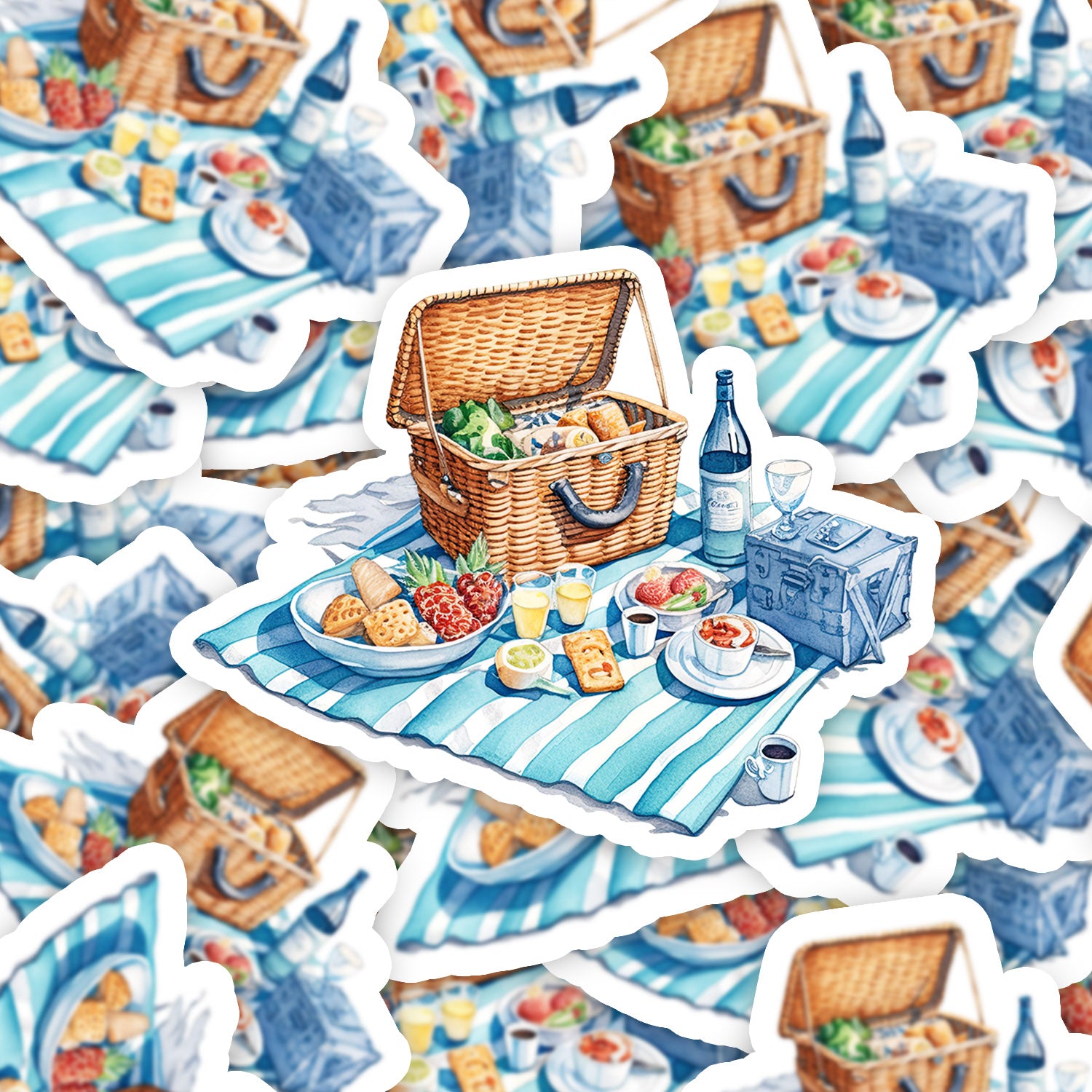 Set 5 bucati, Sticker decorativ, Picnic pe patura, Rezistent la apa, NO10210, 6 cm, Multicolor