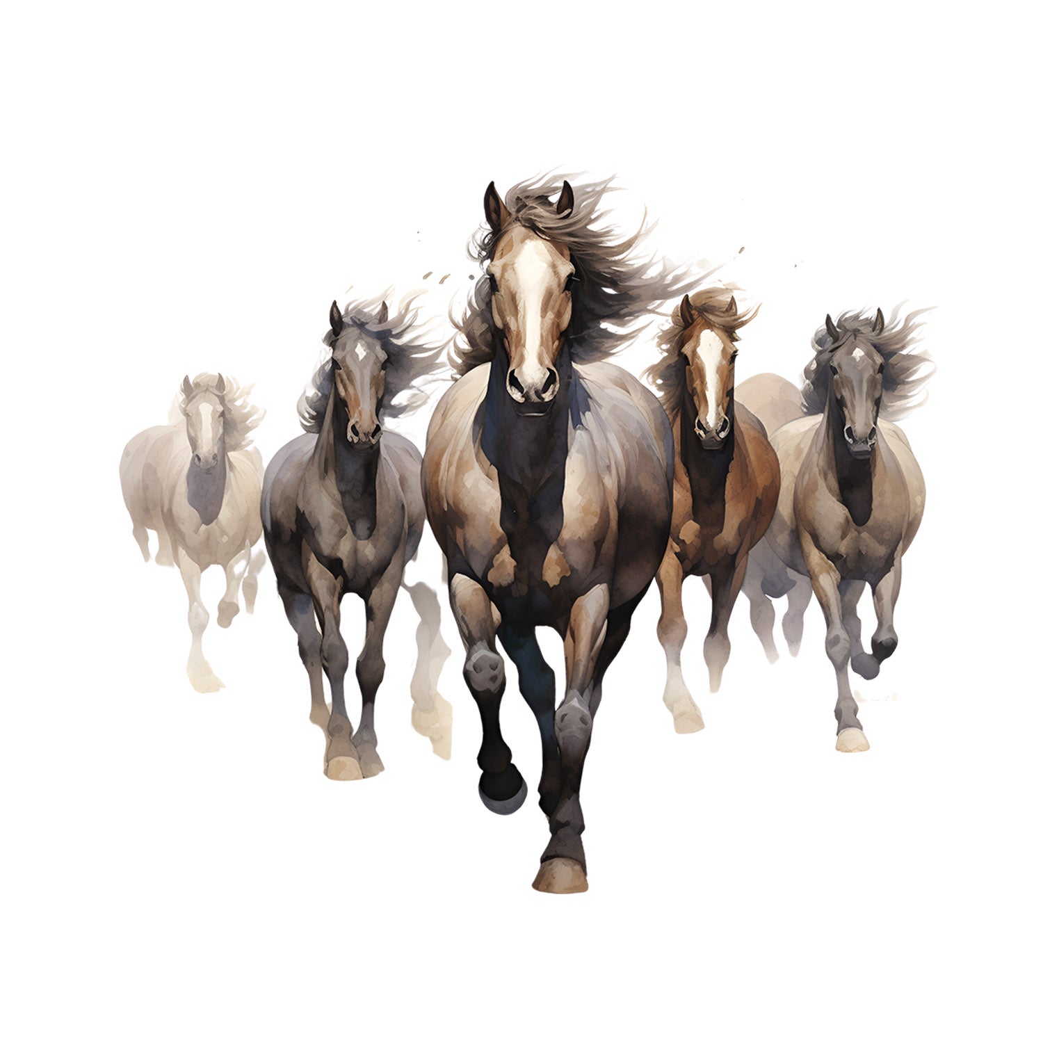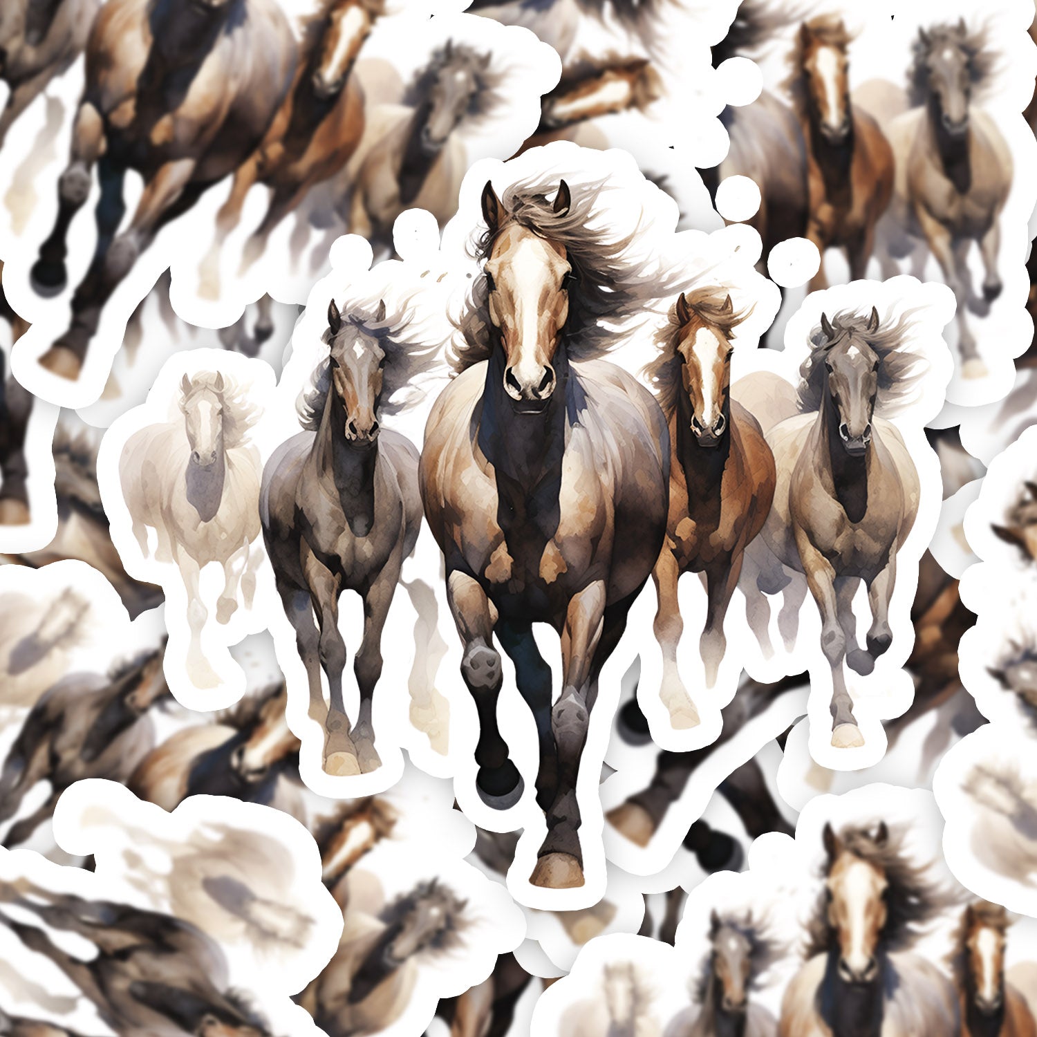 Set 5 bucati, Sticker decorativ, Pictura cu cai, Rezistent la apa, NO12368, 6 cm, Multicolor