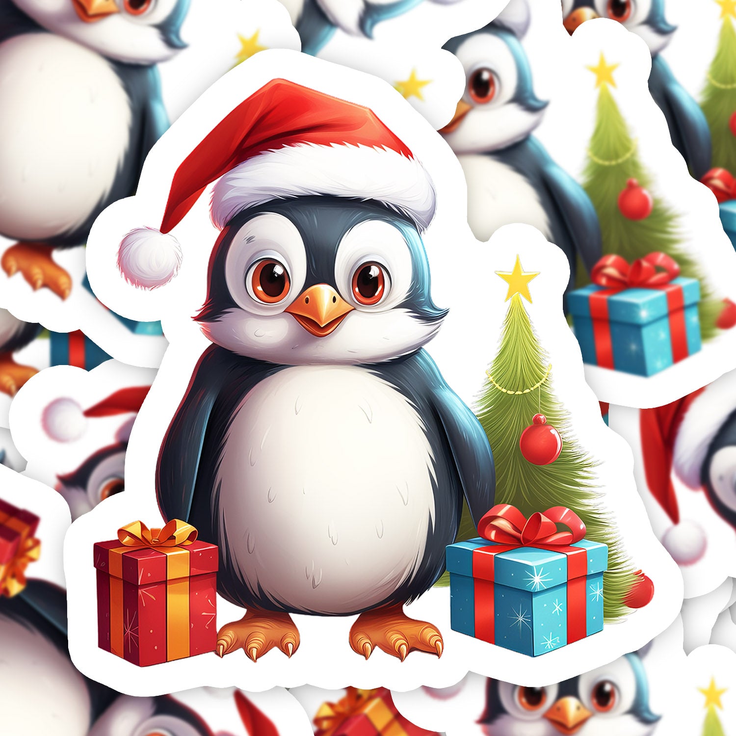 Set 5 bucati, Sticker decorativ, Pinguinul cu cadouri de craciun, Rezistent la apa, NO11981, 6 cm, Multicolor
