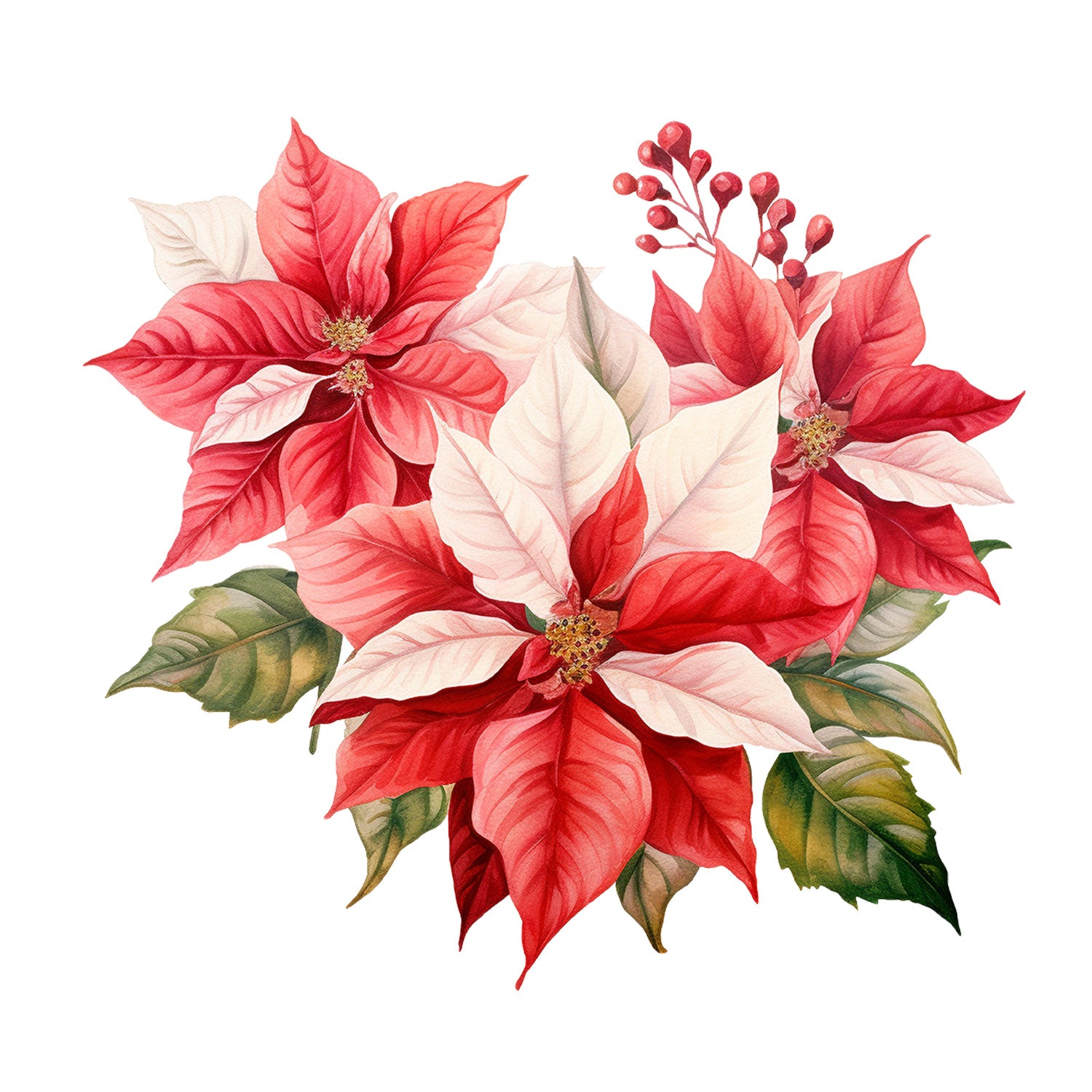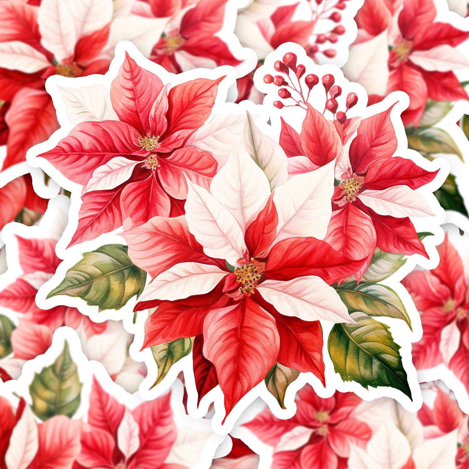 Set 5 bucati, Sticker decorativ, Pionsettia floare de craciun, Rezistent la apa, NO11334, 6 cm, Multicolor