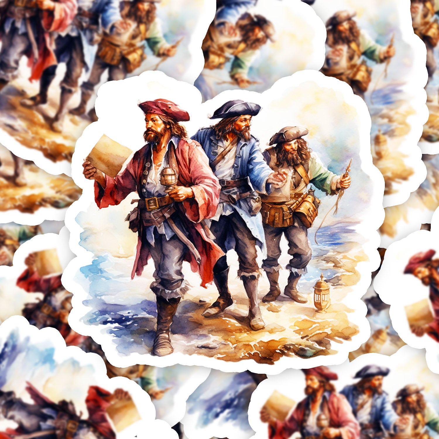 Set 5 bucati, Sticker decorativ, Piratii cauta comoara, Rezistent la apa, NO14309, 6 cm, Multicolor