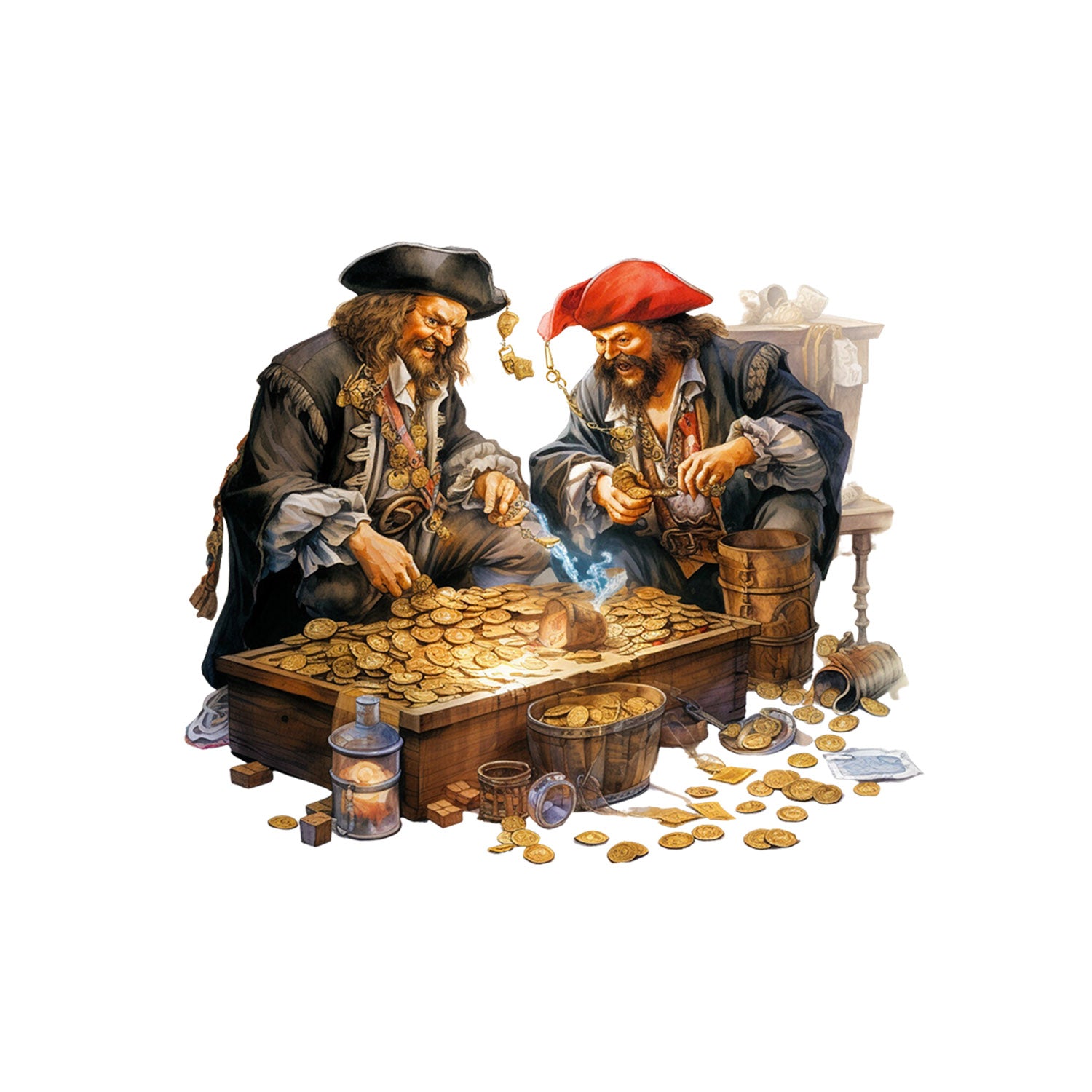 Set 5 bucati, Sticker decorativ, Piratii imart comoara, Rezistent la apa, NO14649, 6 cm, Multicolor