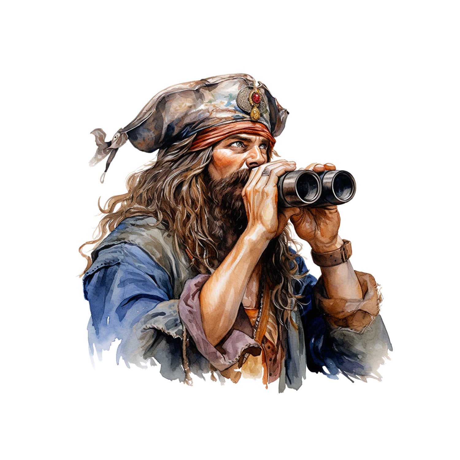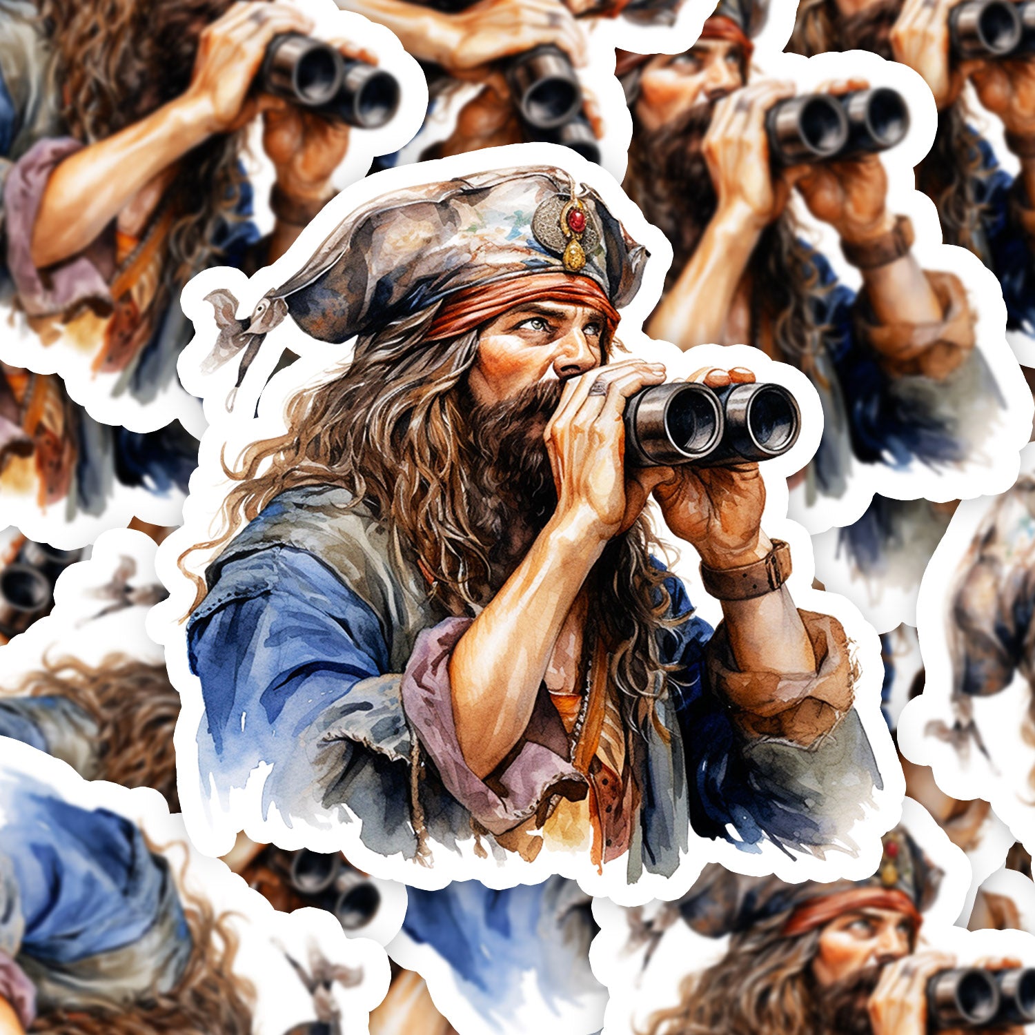 Set 5 bucati, Sticker decorativ, Piratul cu binoclu, Rezistent la apa, NO12296, 6 cm, Multicolor