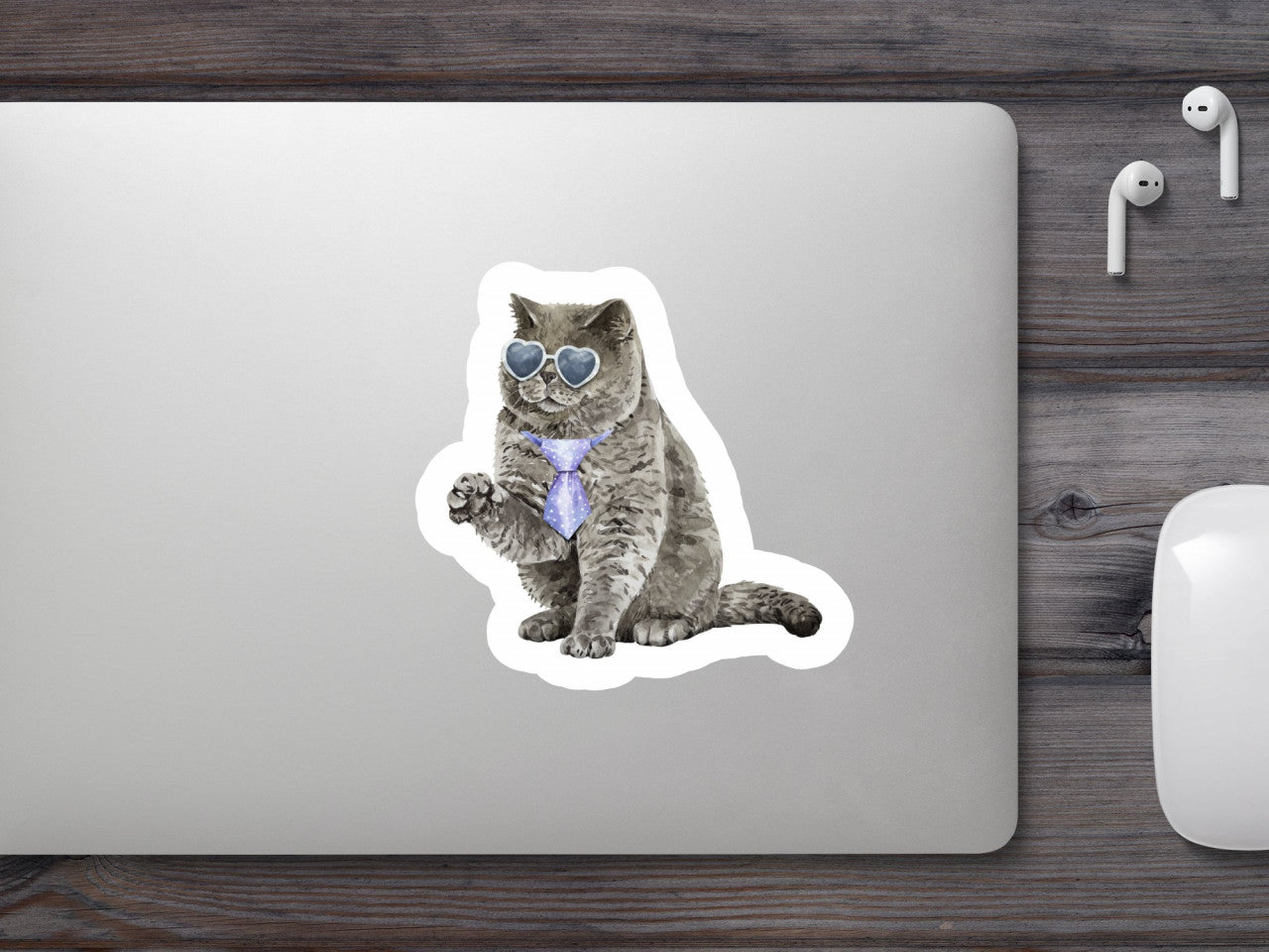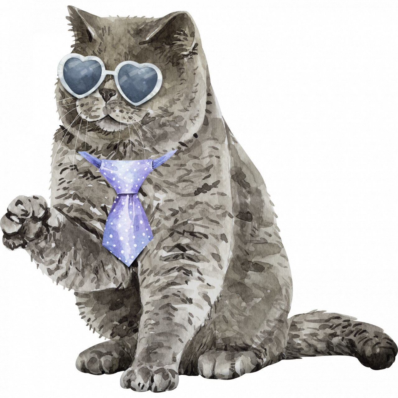 Set 5 bucati, Sticker decorativ, Pisica cu cravata, Rezistent la apa, NO10192, 6 cm, Multicolor