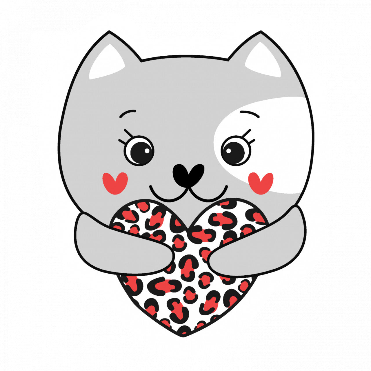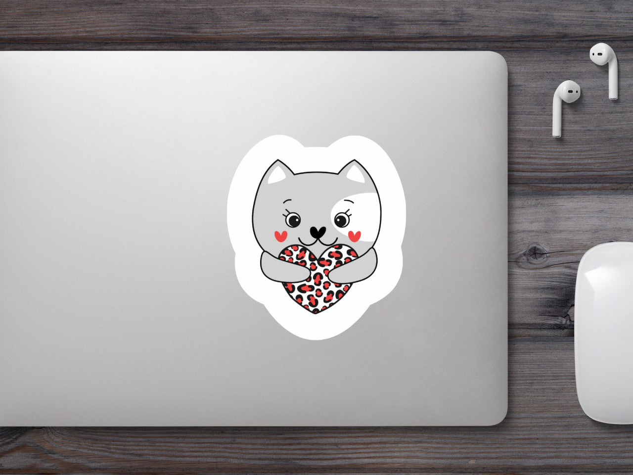 Set 5 bucati, Sticker decorativ, Pisica cu inimioare, Rezistent la apa, NO10194, 6 cm, Multicolor