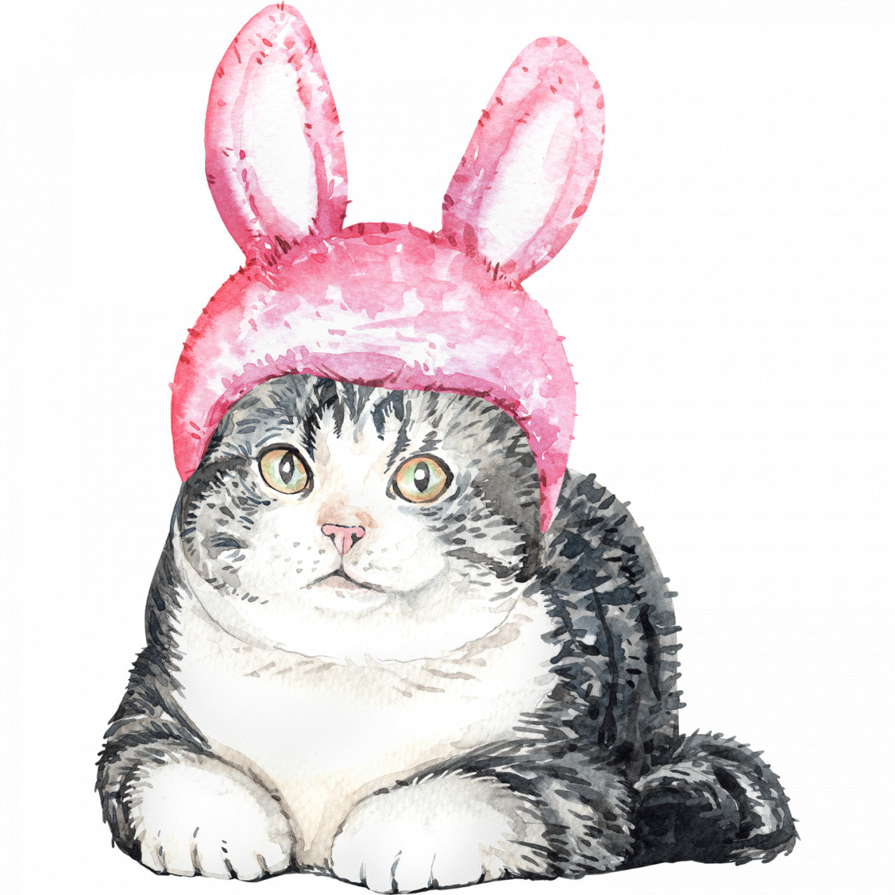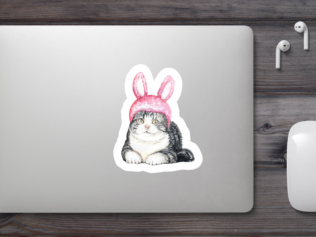 Set 5 bucati, Sticker decorativ, Pisica cu urechi de iepure sta pe jos, Rezistent la apa, NO10202, 6 cm, Multicolor