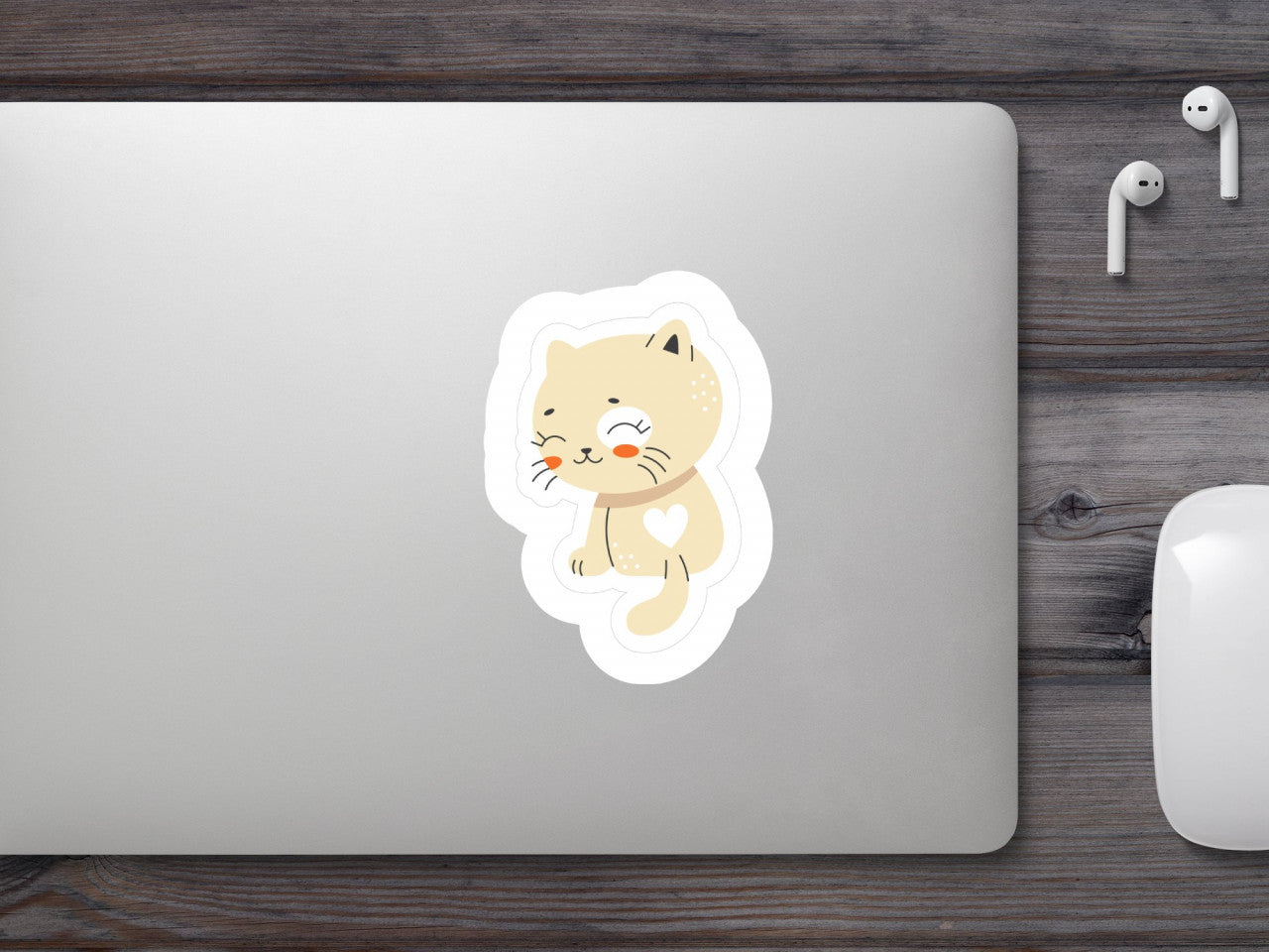 Set 5 bucati, Sticker decorativ, Pisica draguta cu inima mare, Rezistent la apa, NO10211, 6 cm, Multicolor