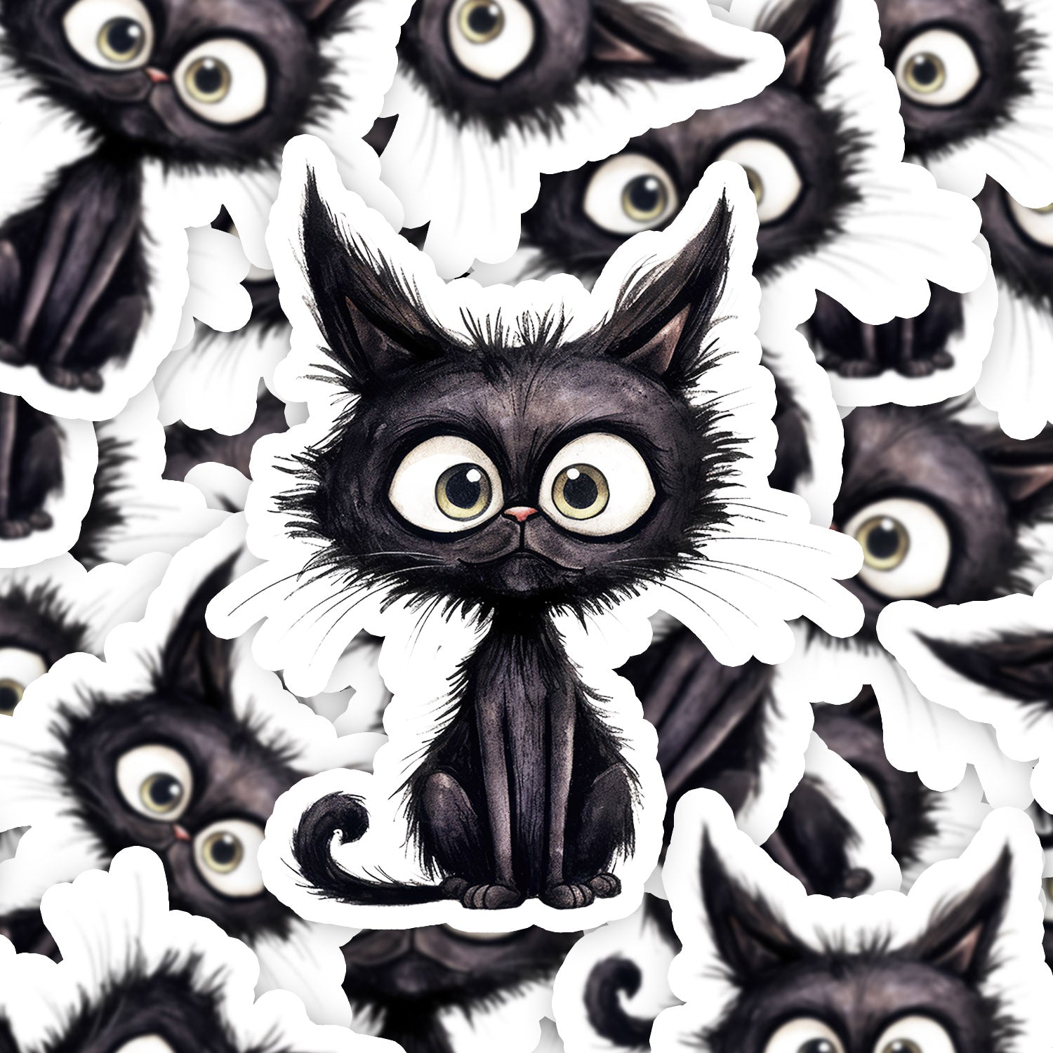 Set 5 bucati, Sticker decorativ, Pisica electrizata, Rezistent la apa, NO15831, 6 cm, Multicolor