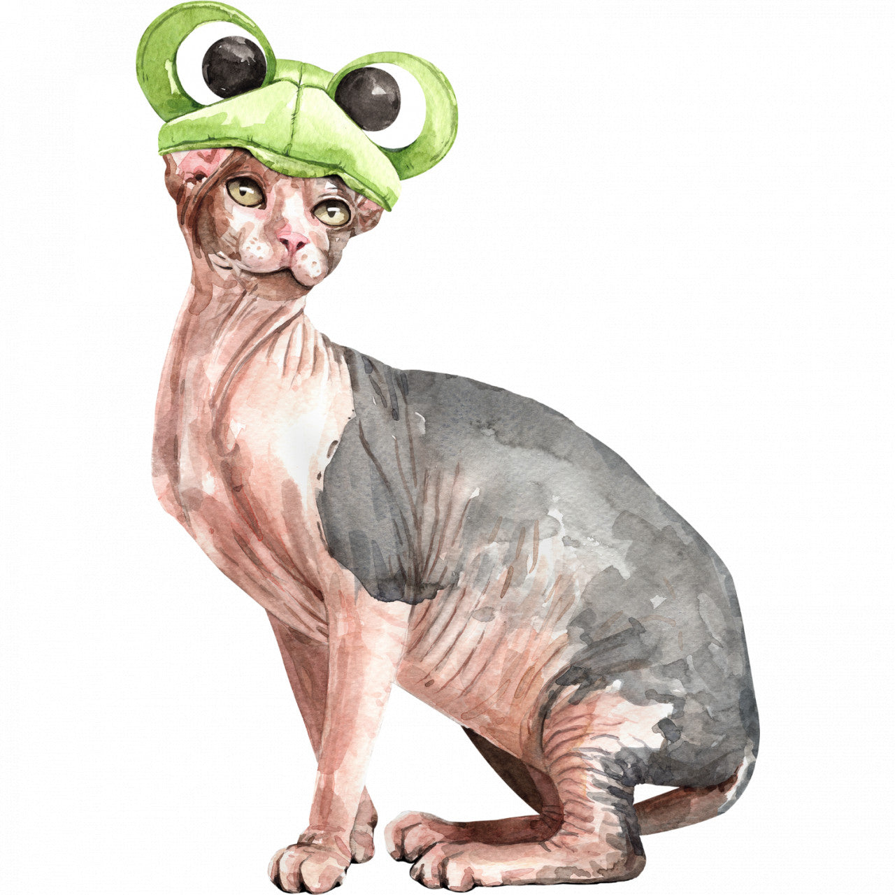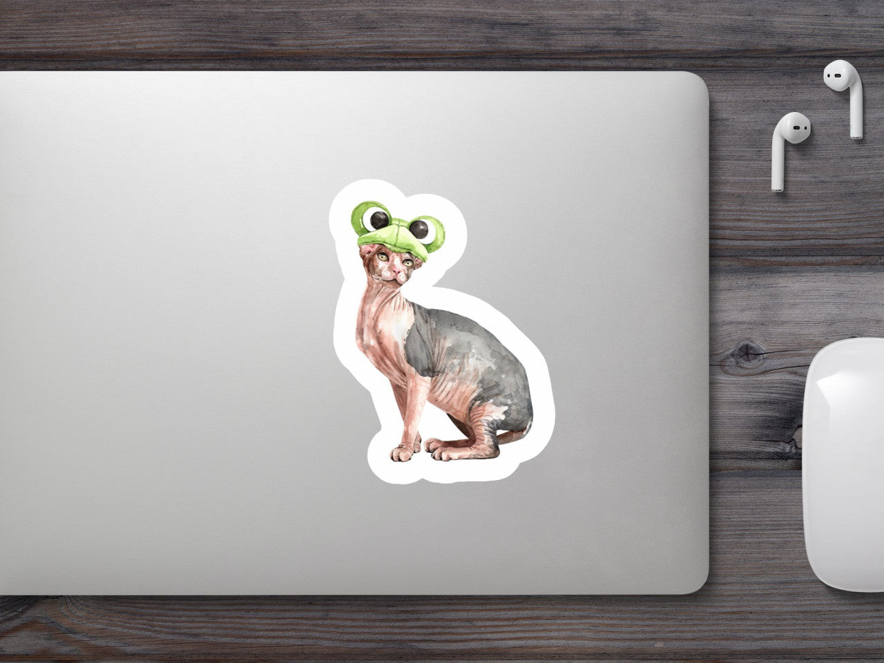 Set 5 bucati, Sticker decorativ, Pisica fara par cu caciula, Rezistent la apa, NO10216, 6 cm, Multicolor