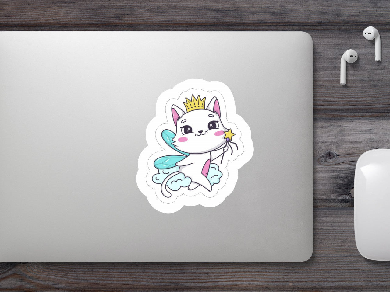 Set 5 bucati, Sticker decorativ, Pisica fermecata, Rezistent la apa, NO10218, 6 cm, Multicolor