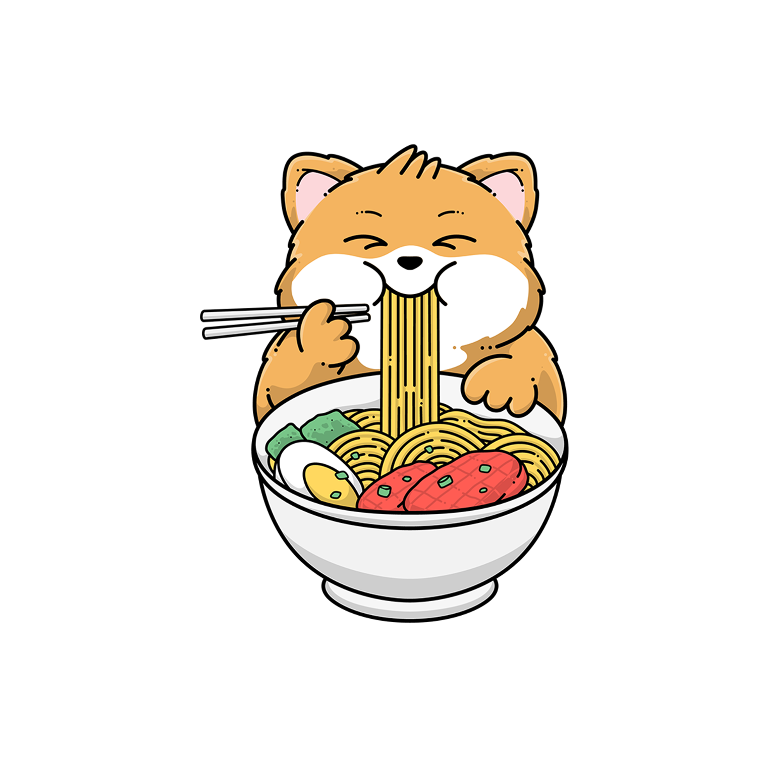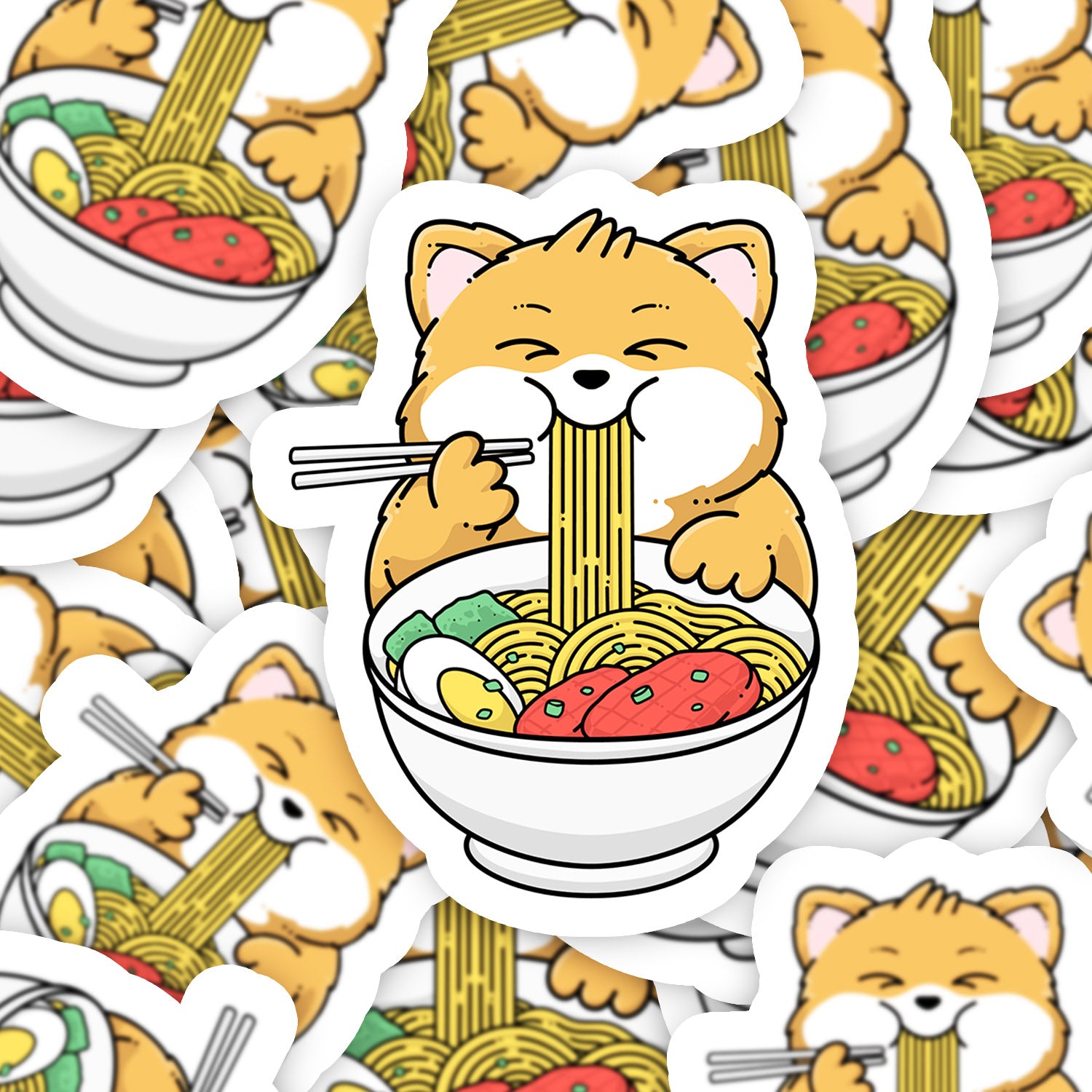 Set 5 bucati, Sticker decorativ, Pisica flamanda mancand ramen.png, Rezistent la apa, NO10327, 6 cm, Multicolor