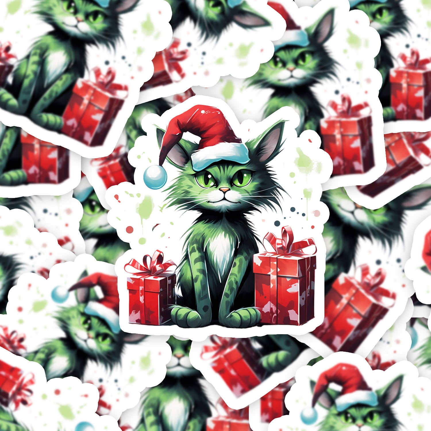 Set 5 bucati, Sticker decorativ, Pisica Grinch sta la poza, Rezistent la apa, NO11050, 6 cm, Multicolor