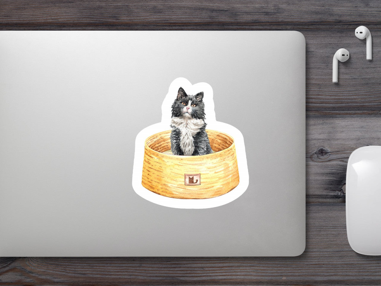 Set 5 bucati, Sticker decorativ, Pisica in patul ei, Rezistent la apa, NO10229, 6 cm, Multicolor