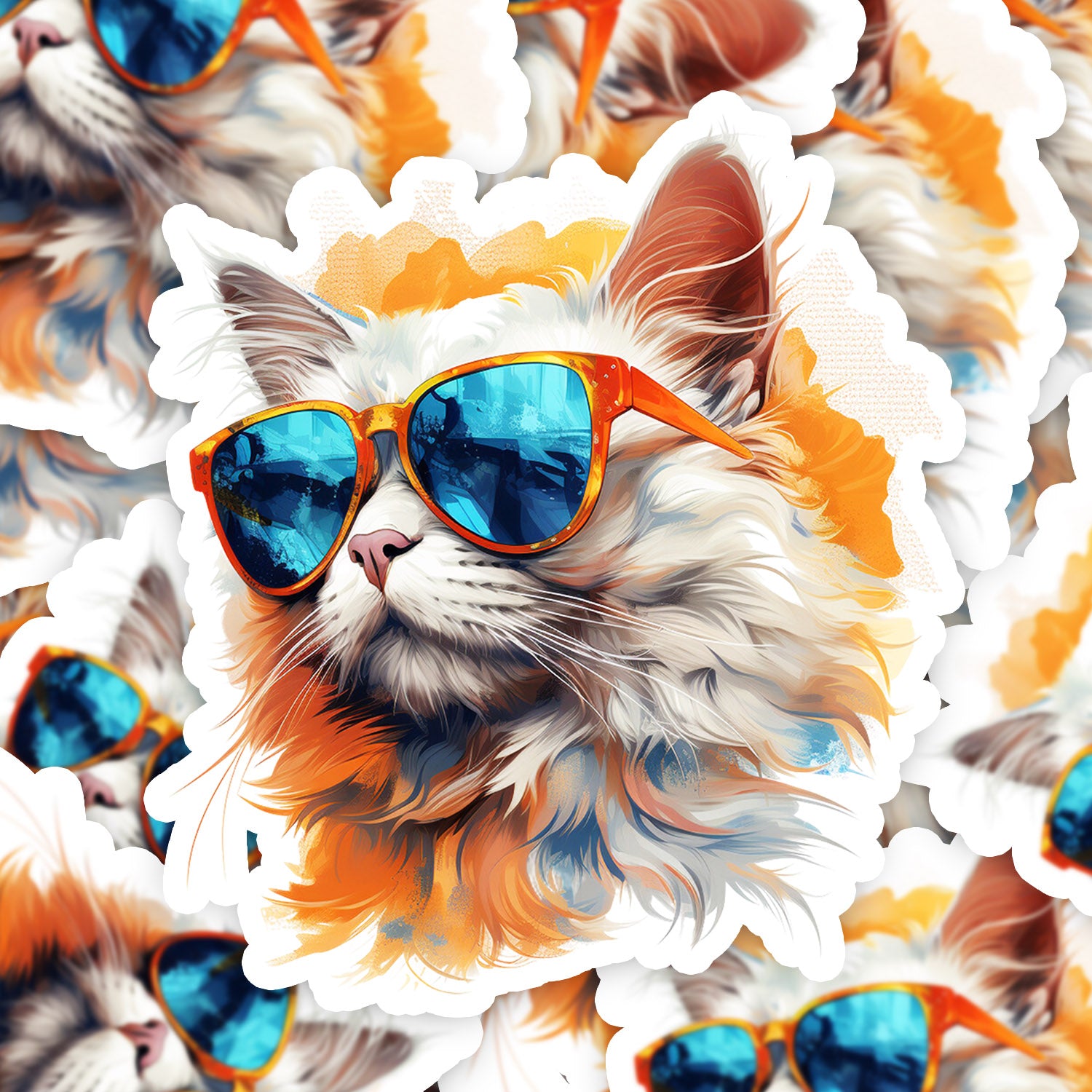 Set 5 bucati, Sticker decorativ, Pisica interlopa, Rezistent la apa, NO13741, 6 cm, Multicolor