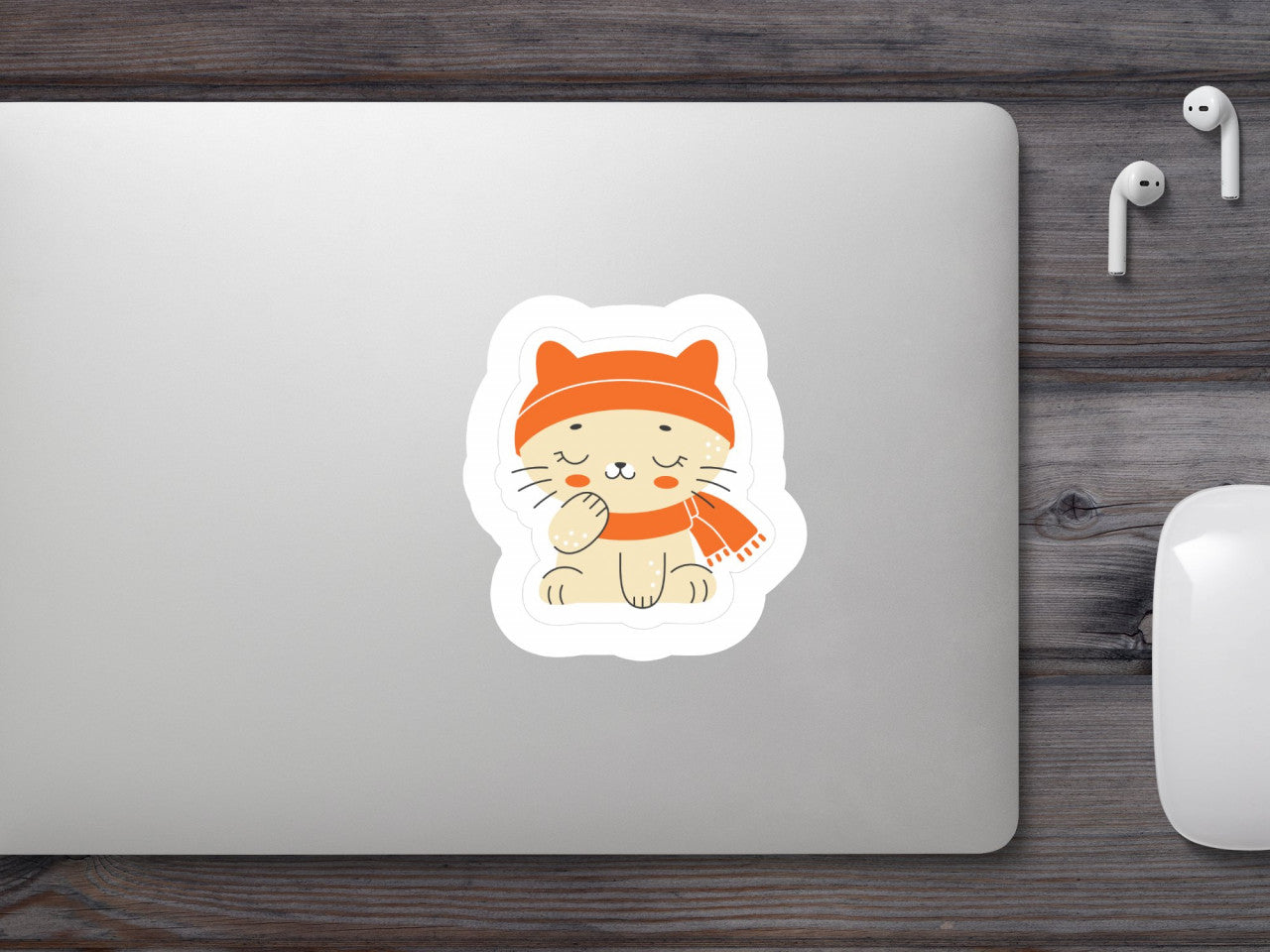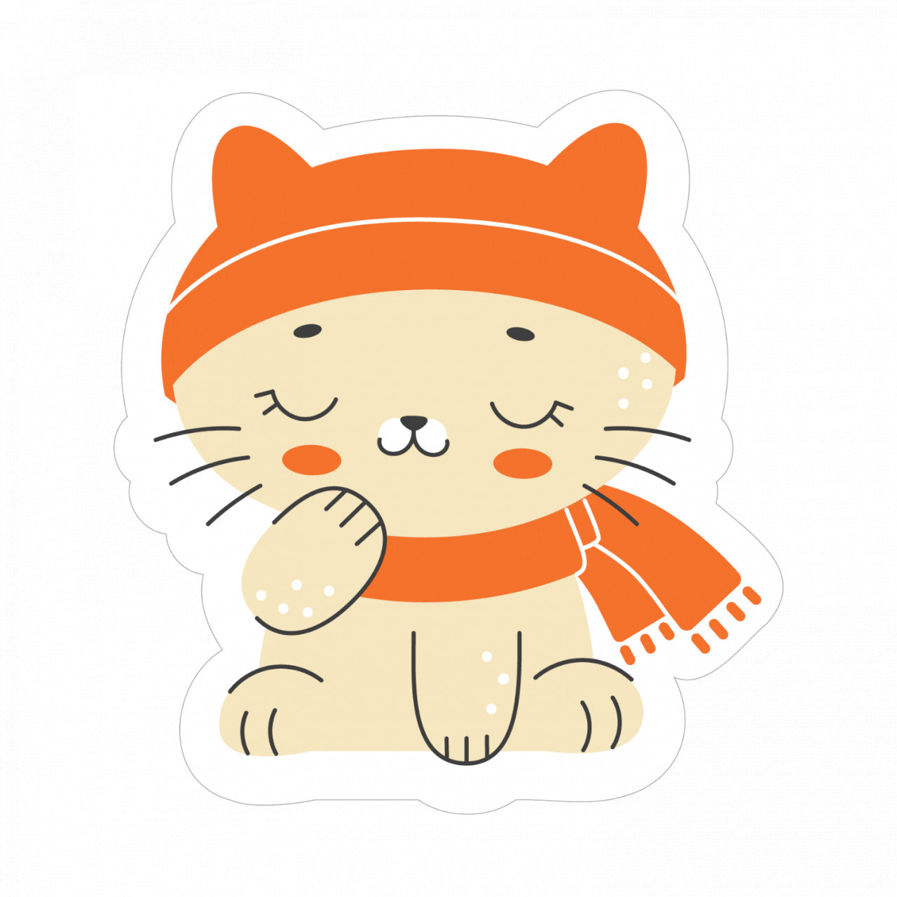 Set 5 bucati, Sticker decorativ, Pisica invelita cu fular, Rezistent la apa, NO10234, 6 cm, Multicolor