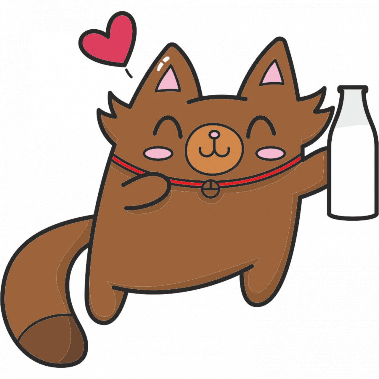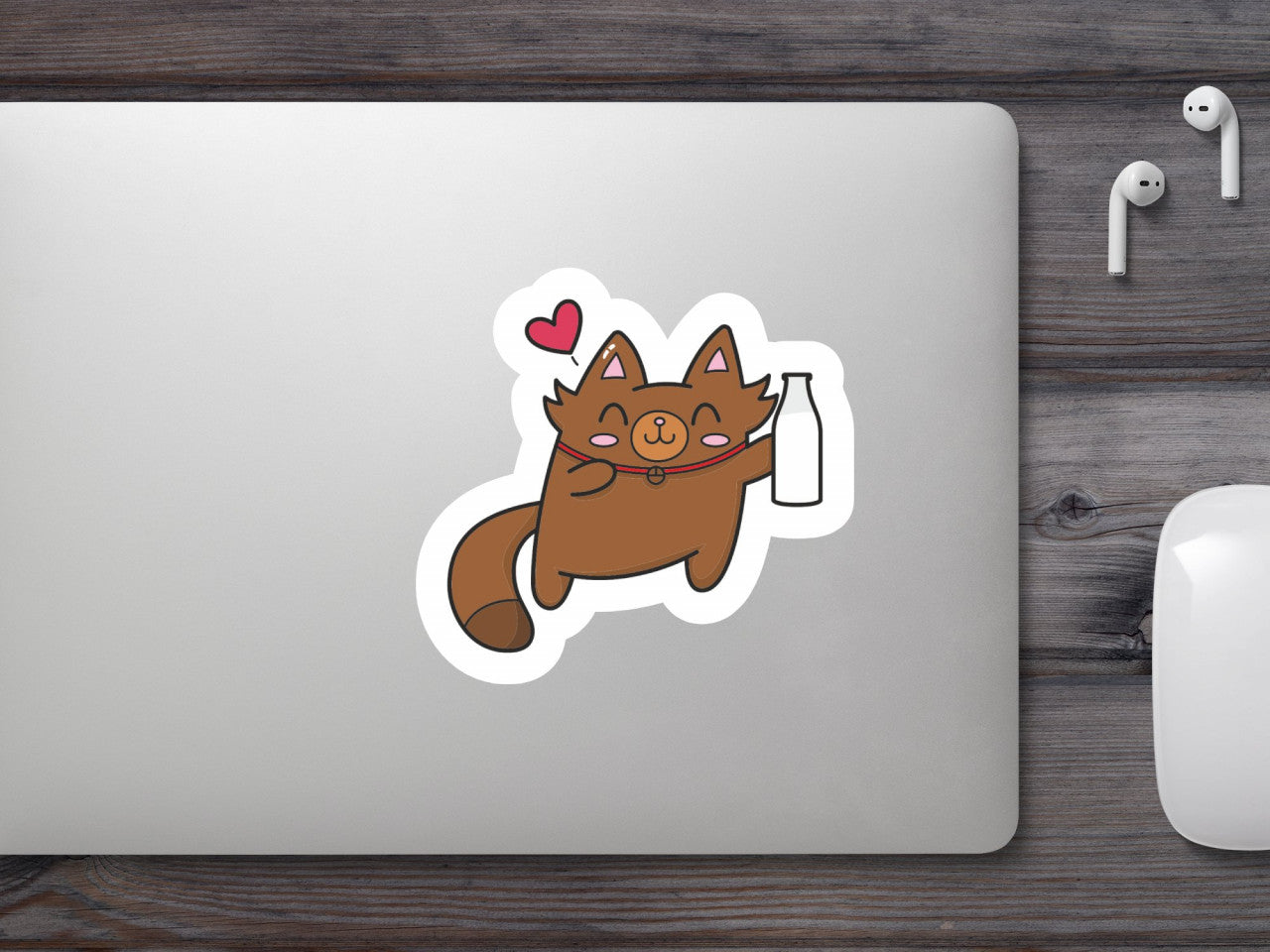 Set 5 bucati, Sticker decorativ, Pisica iubitoare de lapte, Rezistent la apa, NO10236, 6 cm, Multicolor