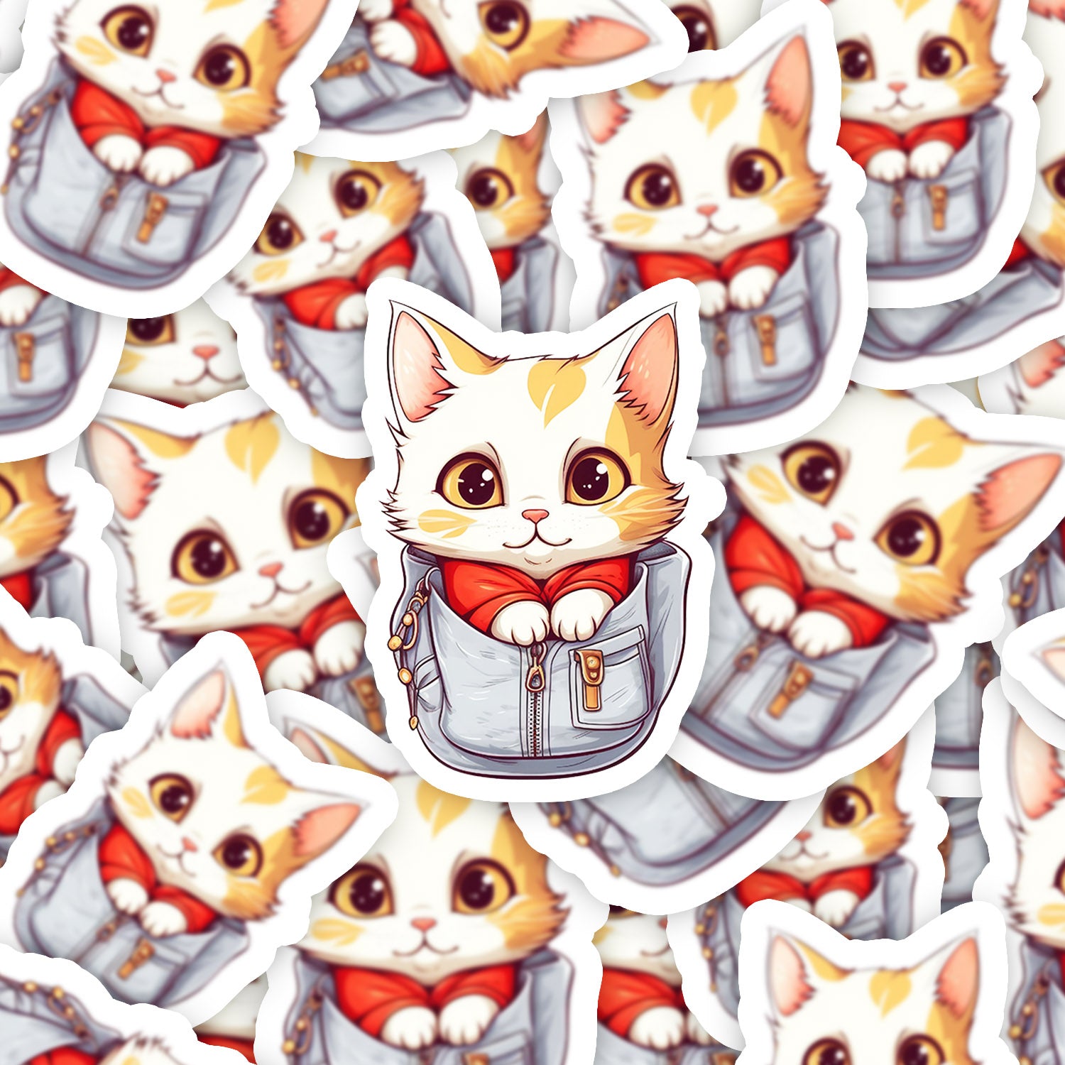 Set 5 bucati, Sticker decorativ, Pisica Izzy, Rezistent la apa, NO10474, 6 cm, Multicolor