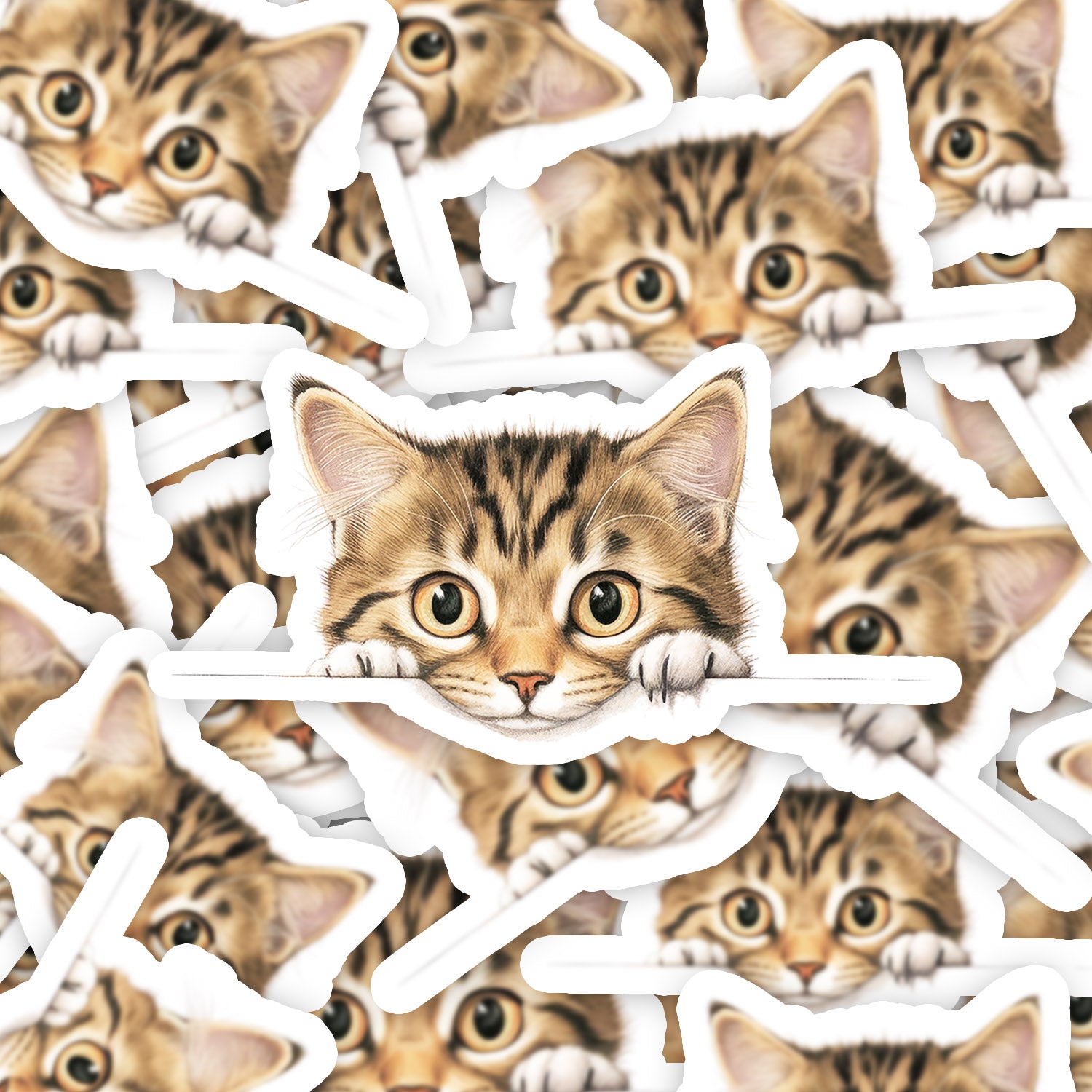 Set 5 bucati, Sticker decorativ, Pisica la poza, Rezistent la apa, NO11880, 6 cm, Multicolor