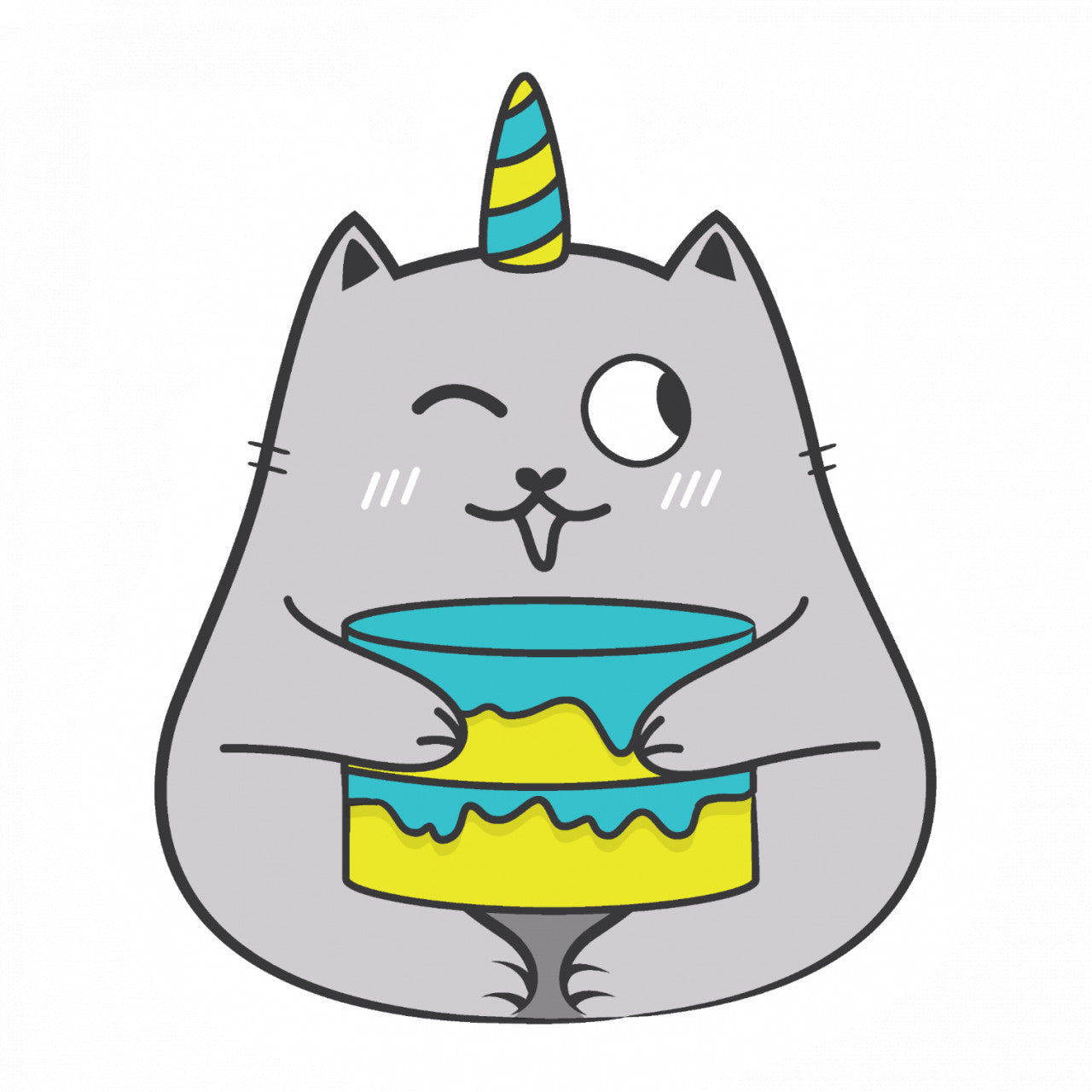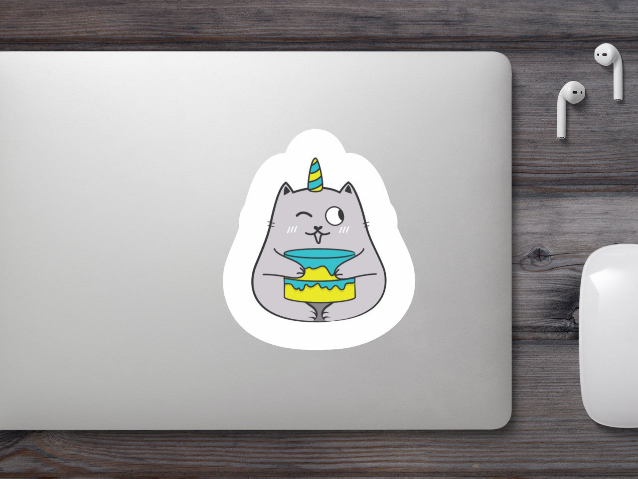 Set 5 bucati, Sticker decorativ, Pisica la ziua ei de nastere, Rezistent la apa, NO10238, 6 cm, Multicolor