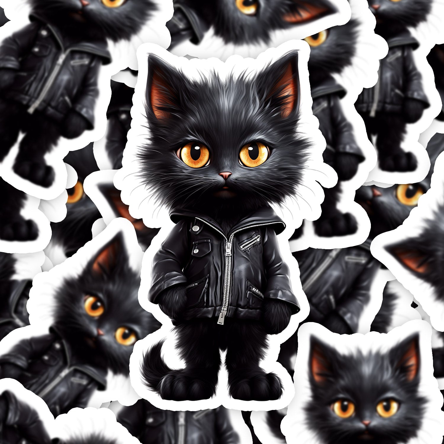 Set 5 bucati, Sticker decorativ, Pisica Leo, Rezistent la apa, NO10285, 6 cm, Multicolor