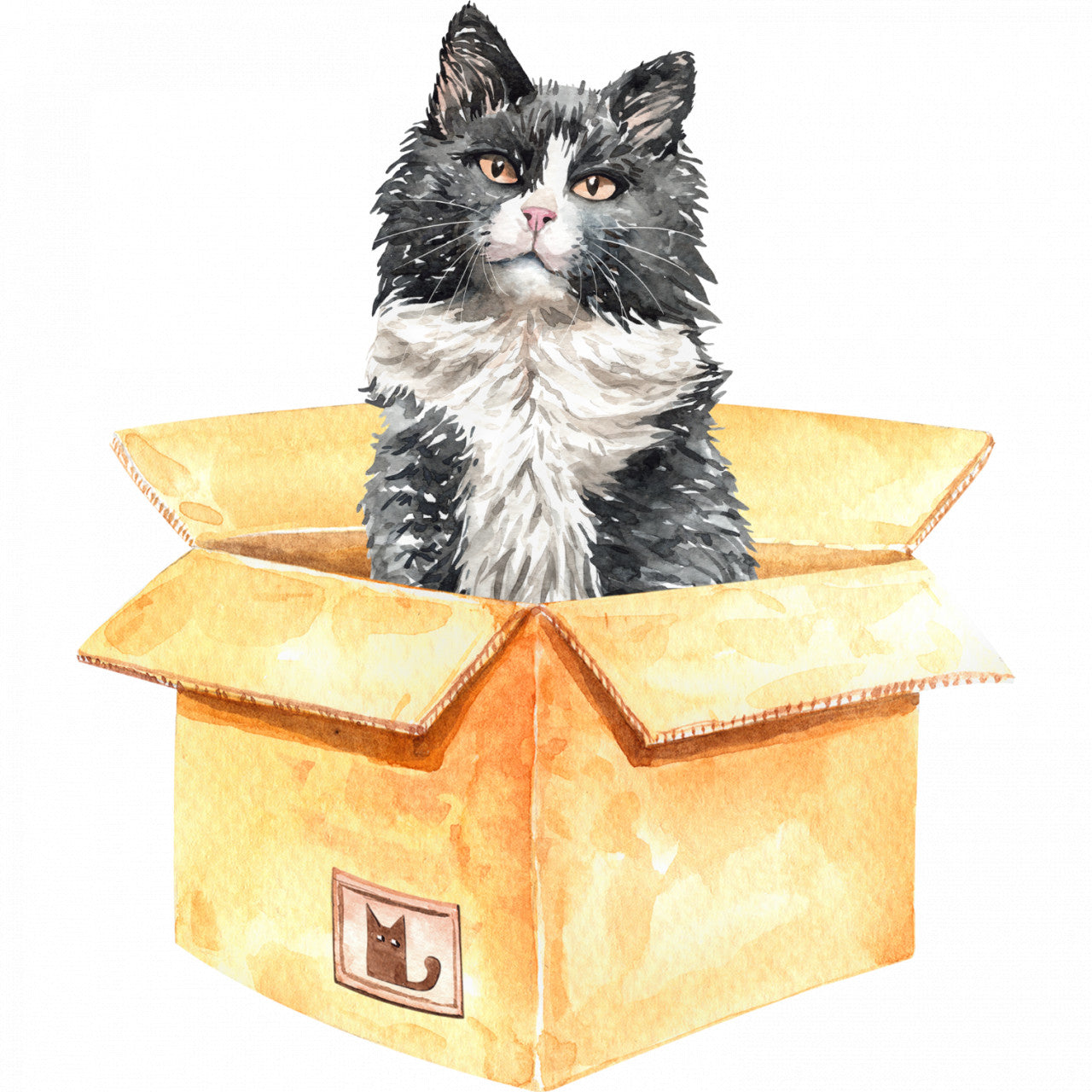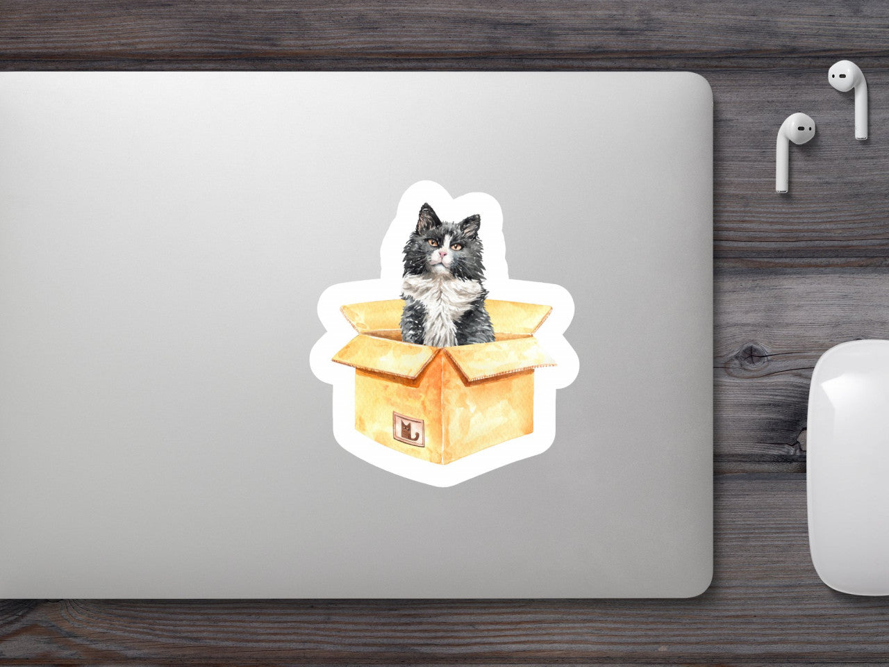 Set 5 bucati, Sticker decorativ, Pisica lui Schrodinger, Rezistent la apa, NO10239, 6 cm, Multicolor