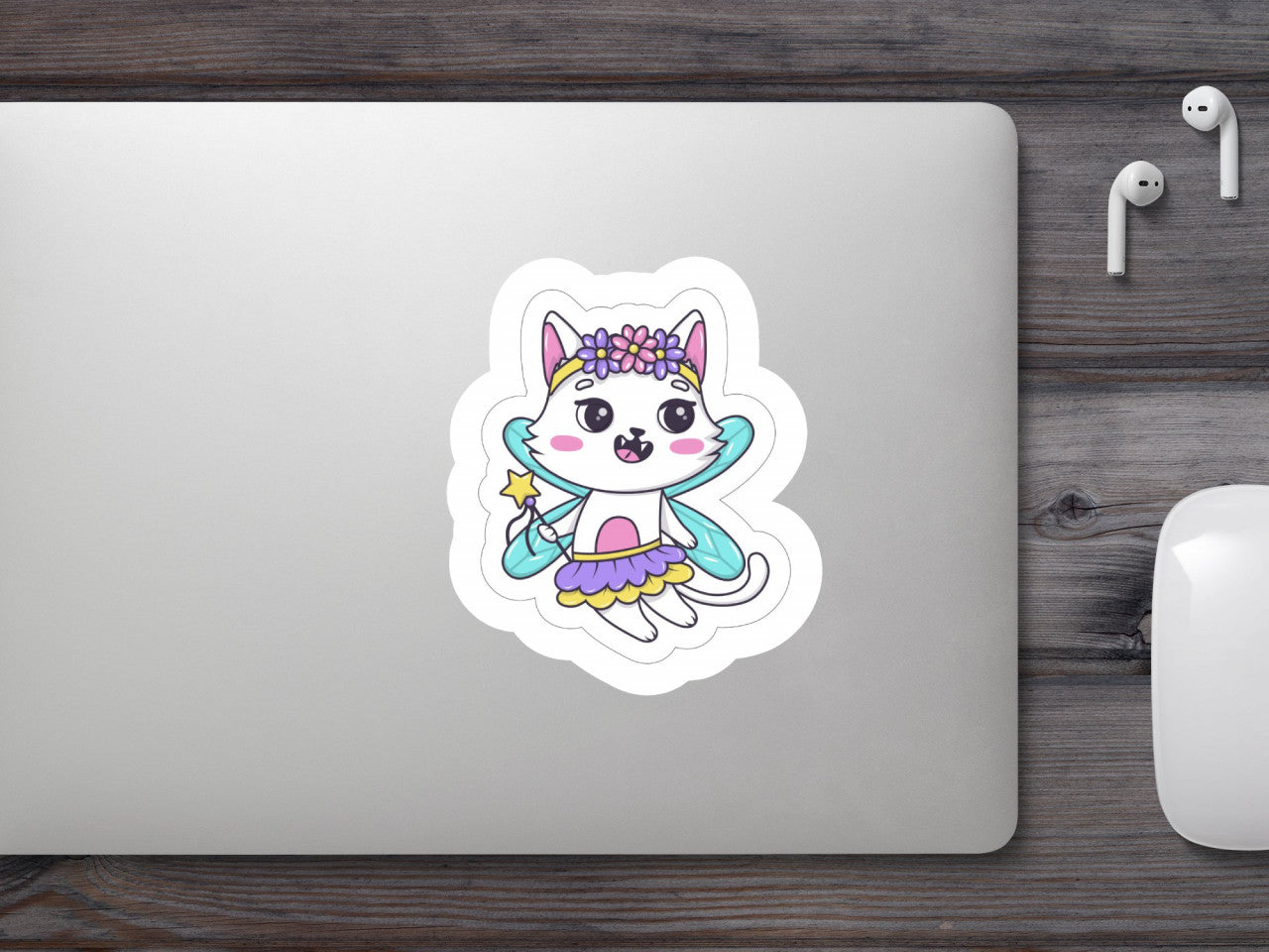 Set 5 bucati, Sticker decorativ, Pisica magica, Rezistent la apa, NO10241, 6 cm, Multicolor