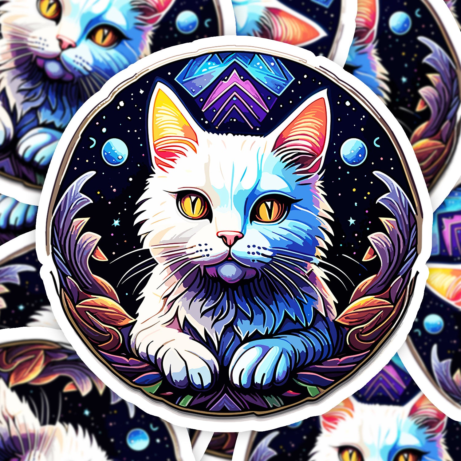 Set 5 bucati, Sticker decorativ, Pisica magnifica, Rezistent la apa, NO12940, 6 cm, Multicolor