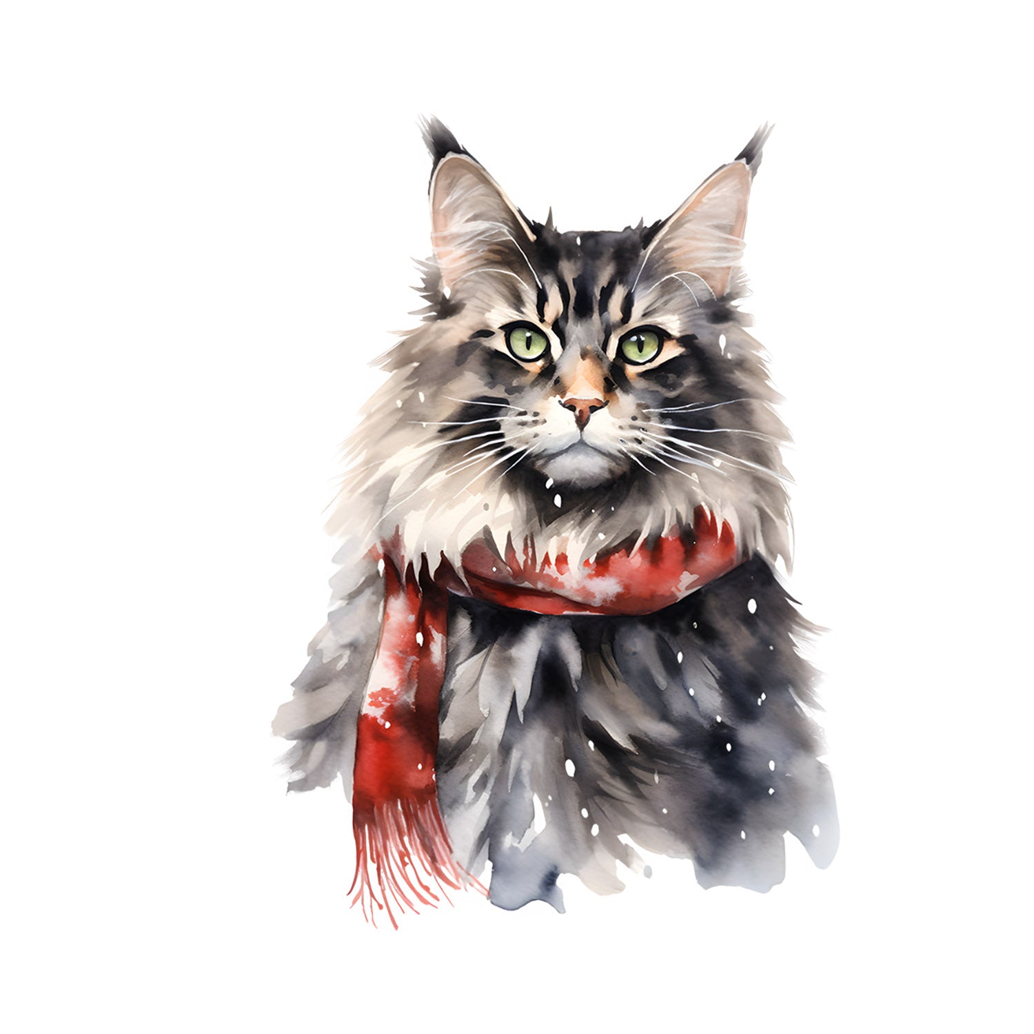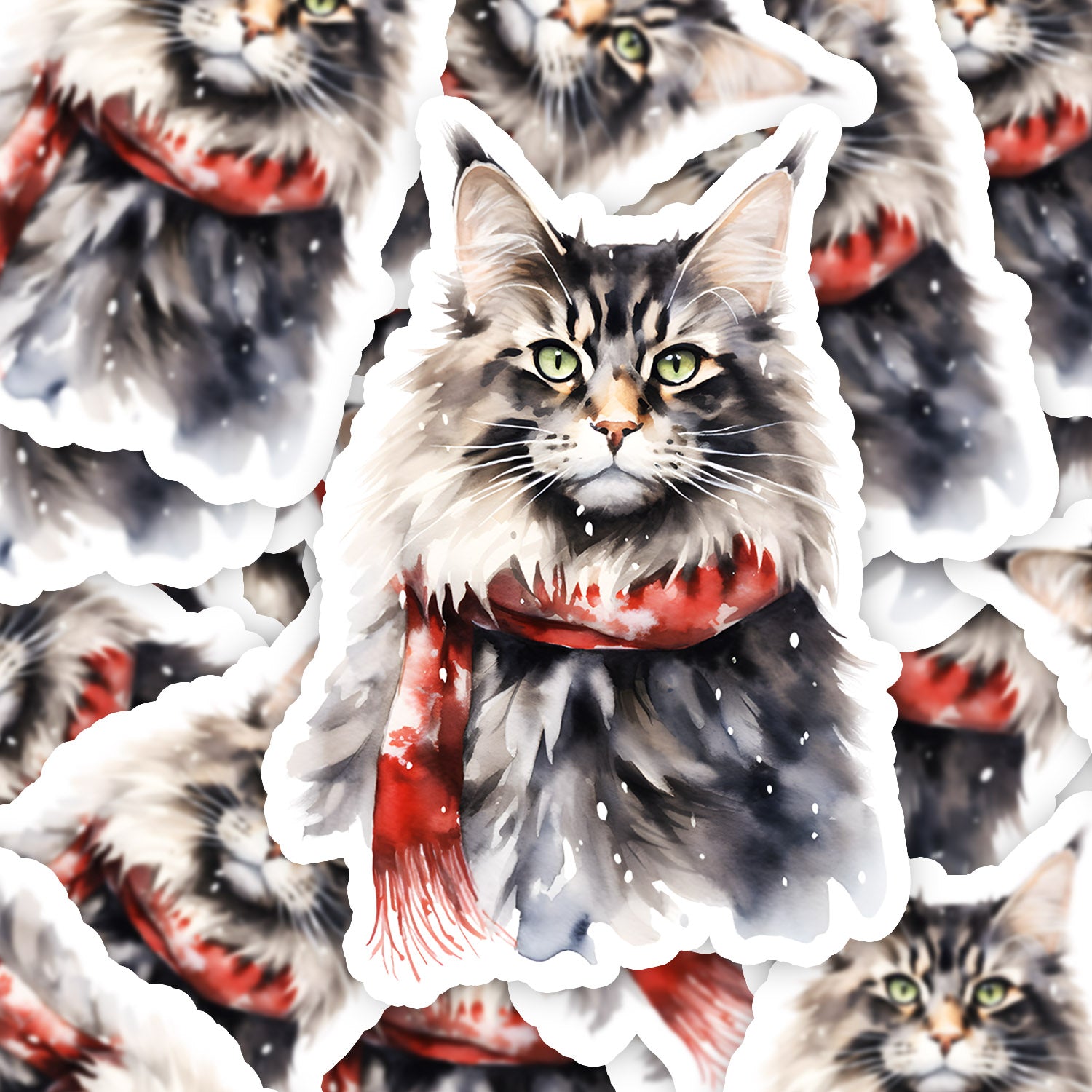 Set 5 bucati, Sticker decorativ, Pisica Maine Coon, Rezistent la apa, NO11555, 6 cm, Multicolor