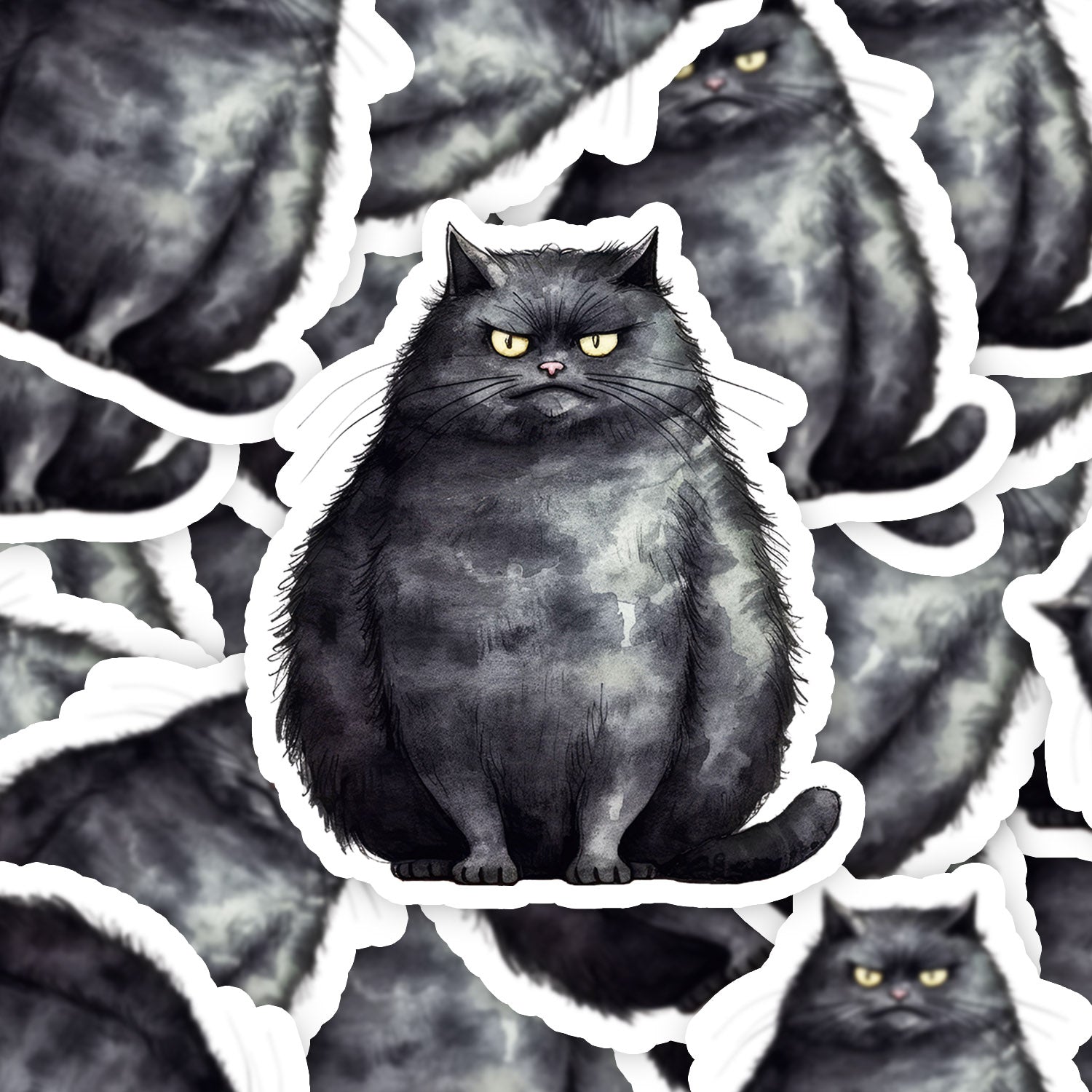 Set 5 bucati, Sticker decorativ, Pisica mancacioasa, Rezistent la apa, NO11556, 6 cm, Multicolor