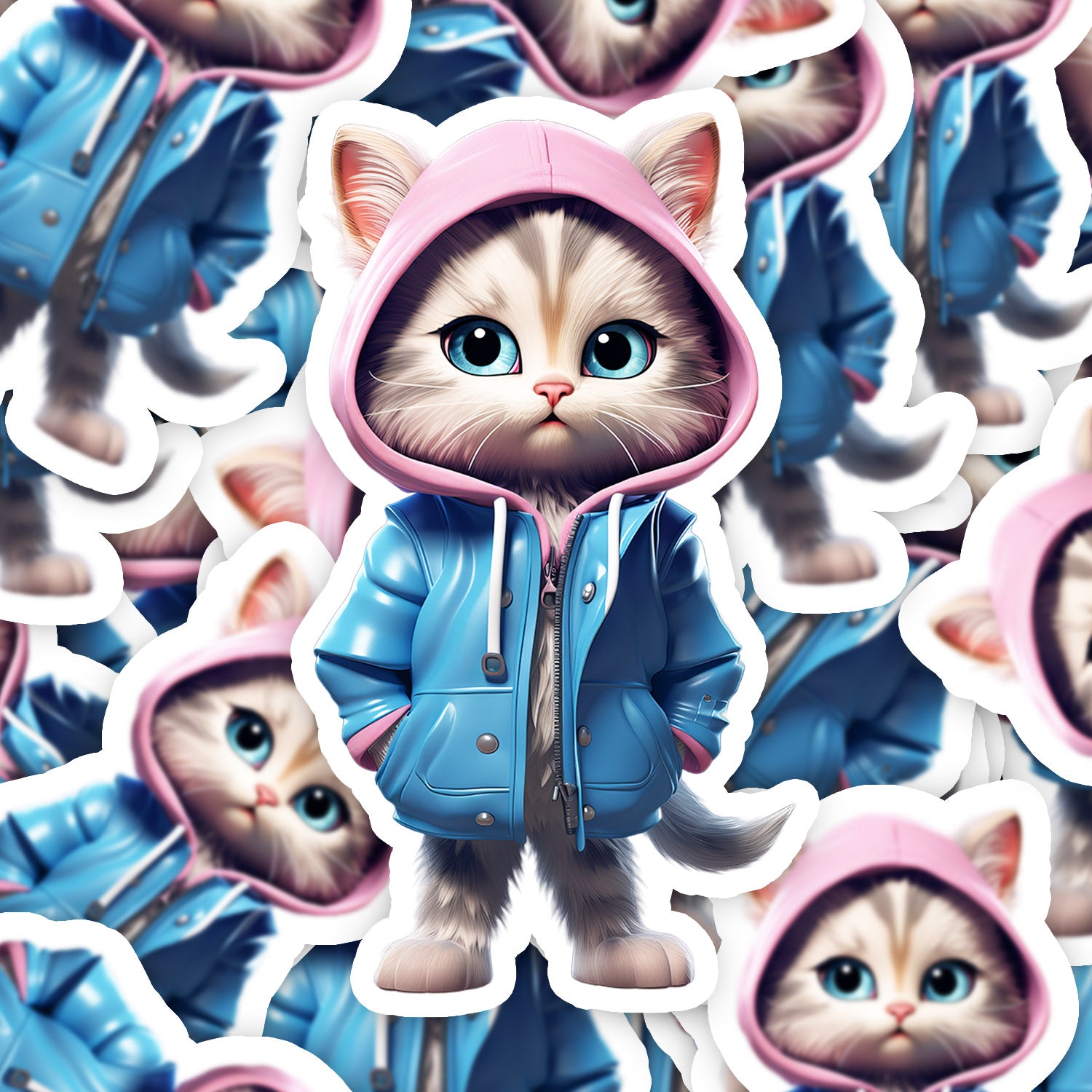 Set 5 bucati, Sticker decorativ, Pisica Milo, Rezistent la apa, NO10040, 6 cm, Multicolor