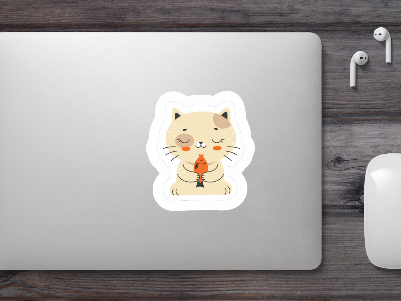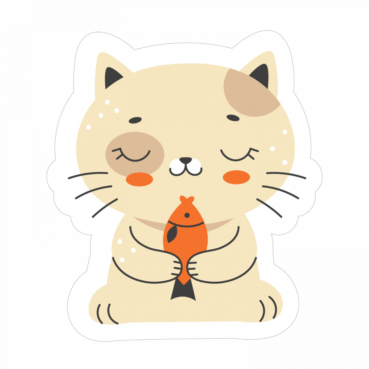 Set 5 bucati, Sticker decorativ, Pisica mirosind un peste, Rezistent la apa, NO10242, 6 cm, Multicolor