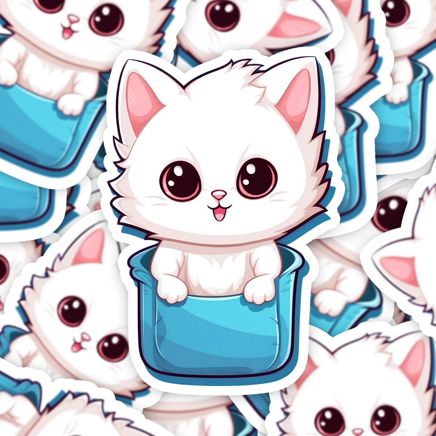 Set 5 bucati, Sticker decorativ, Pisica Murphy, Rezistent la apa, NO12128, 6 cm, Multicolor