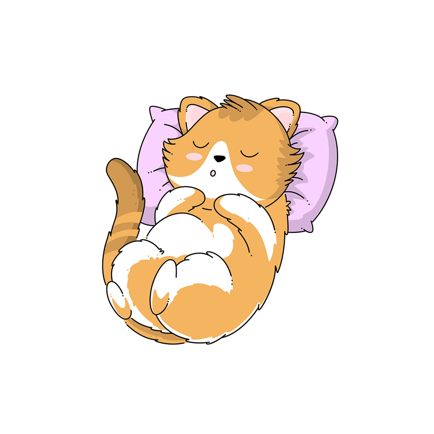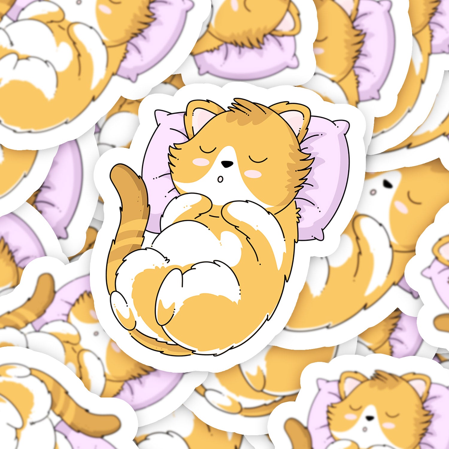 Set 5 bucati, Sticker decorativ, Pisica obosita, Rezistent la apa, NO13592, 6 cm, Multicolor