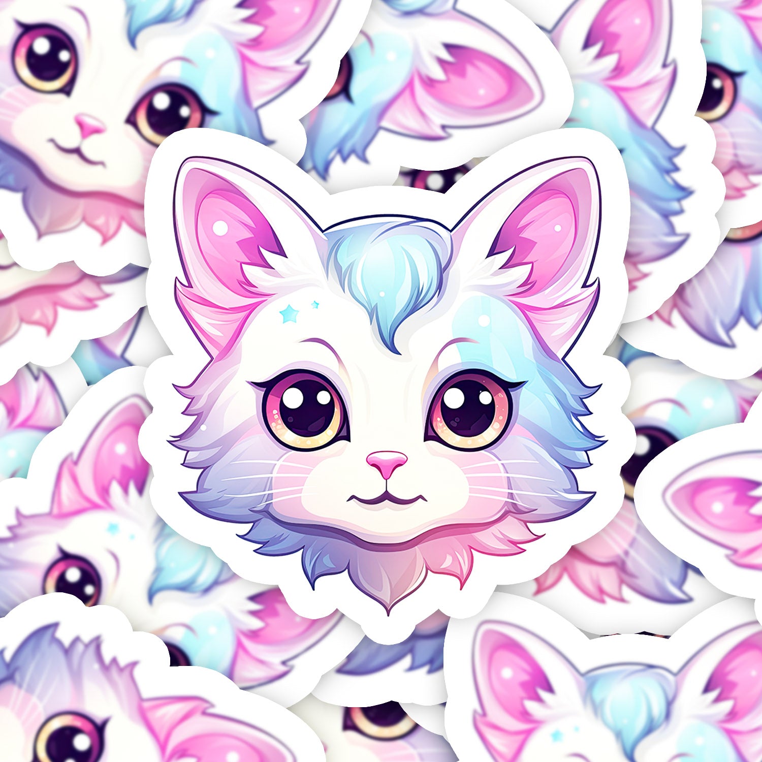 Set 5 bucati, Sticker decorativ, Pisica Ollie, Rezistent la apa, NO14595, 6 cm, Multicolor